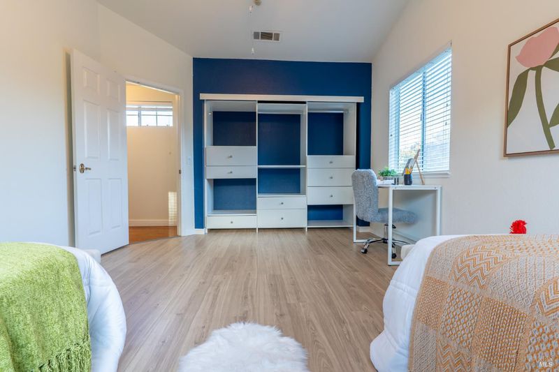 This spacious 5-bedroom, 3-bathroom home sits on a generous 0.6-acre lot with vineyard and beautiful hillside views located in desirable Brown's Valley neighborhood. The landscaped front yard and covered porch welcome you into a warm living room featuring hardwood floors, a pitched ceiling, and a cozy fireplace. Just a few steps up, the main level offers a formal dining room, laundry room, and a kitchen that opens to the family room and a covered back patio - perfect for indoor-outdoor living. The primary suite is also on the main level and features vaulted ceilings, a walk-in closet, and a luxurious bathroom with a jetted soaking tub, tiled stall shower, and private toilet room. An additional bedroom or office with a full bath completes the main level. Upstairs, you'll find three spacious bedrooms and a full bathroom with dual sinks and shower over tub. The backyard is an entertainer's paradise with a built-in BBQ, covered patio, gardens, fruit trees, chickencoop, and a lovely Gazebo up above, along with approximately 1,000 Cabernet vines ideal for a hobby vineyard with stunning views of the hills. A 3-car garage with extra storage along the back wall completes the property. This exceptional home blends comfort, functionality, and a true Napa Valley lifestyle.