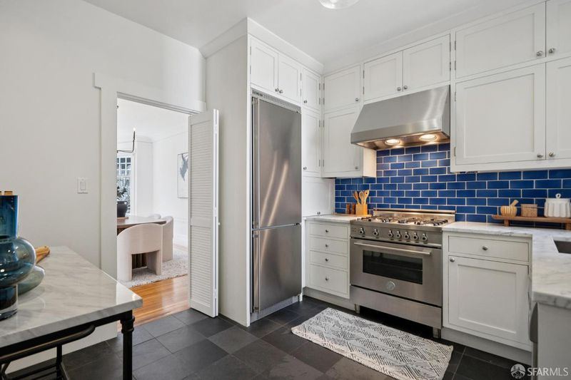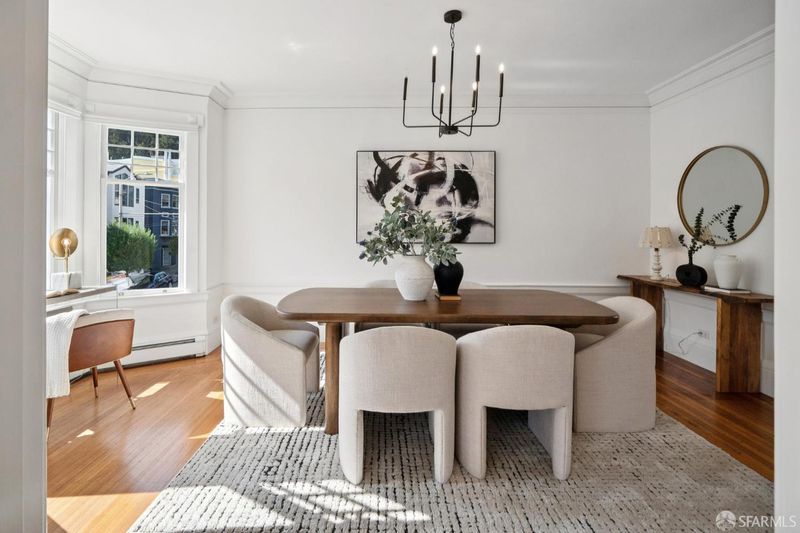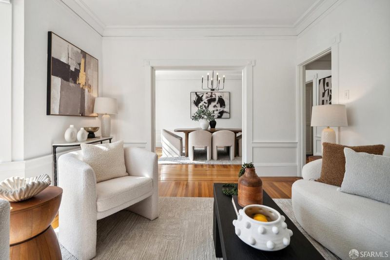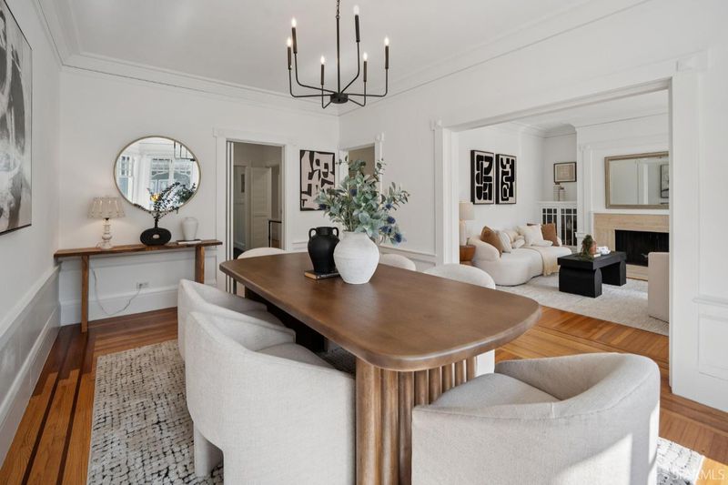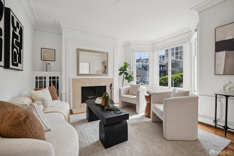 A Singular Location: Where Union Street meets The Presidio! this spacious one-bedroom residence is located in the highly desirable Cow Hollow neighborhood, just steps from Presidio trails and parks. This beautifully maintained 7-unit building showcases classic architectural charm, including gorgeous crown molding and a stained-glass entry lobby. The sunny, south-facing unit features bay windows, hardwood floors, and elegant formal living and dining rooms. A wood-burning fireplace anchors the generously sized living room, creating a warm and inviting atmosphere. The renovated kitchen showcases Carrara marble countertops, custom cabinetry, and high-end stainless steel appliances, including a newer oven and gas range. The formal dining room flows seamlessly into the kitchenideal for entertaining. Partial views of the Palace of Fine Arts can be enjoyed from the kitchen. A specious rear bedroom, updated bath, and common laundry complete the home. Just three blocks from Billionaires Row,'' and moments to Crissy Field, Tunnel Tops, St. Francis Yacht Club, Marina Green, plus the shops and dining of Union, Chestnut, and Fillmore Streets. Come see this exquisite condominium in one of the most desirable locations in San Francisco!