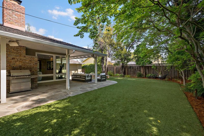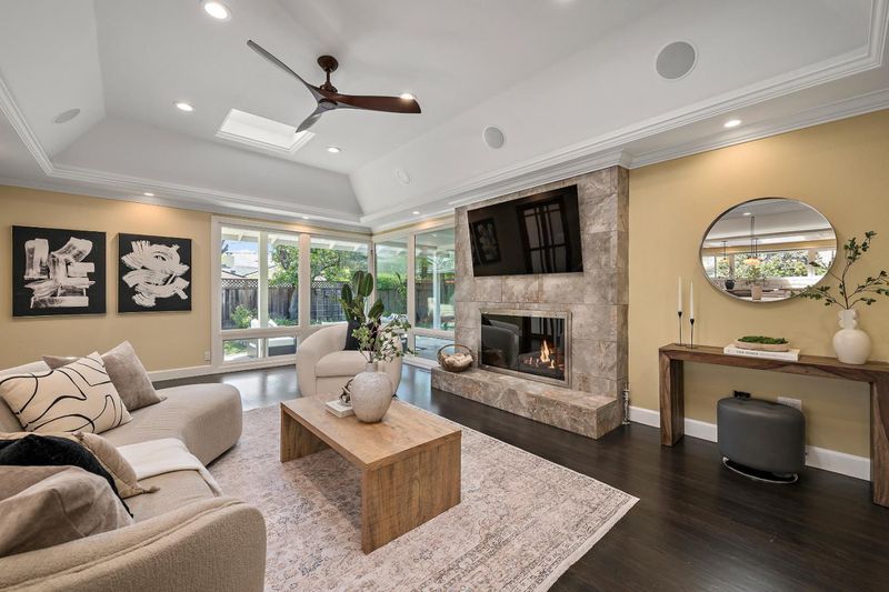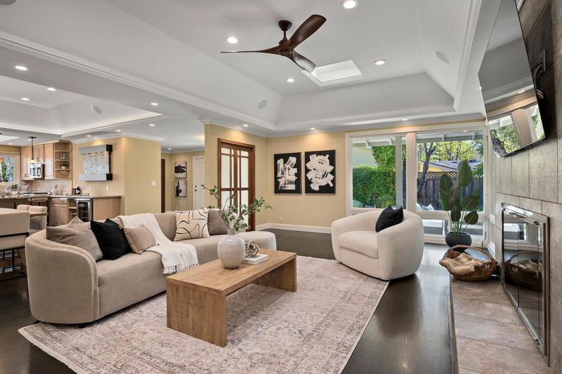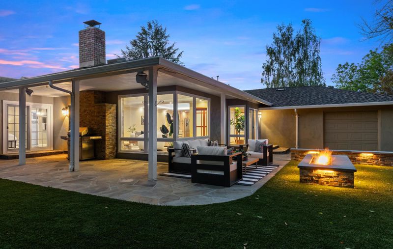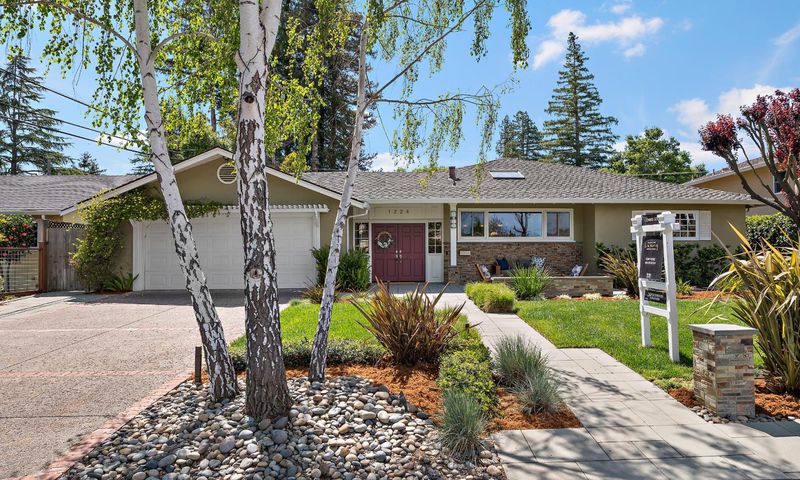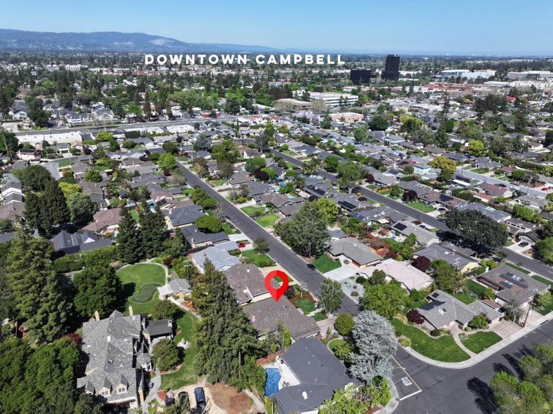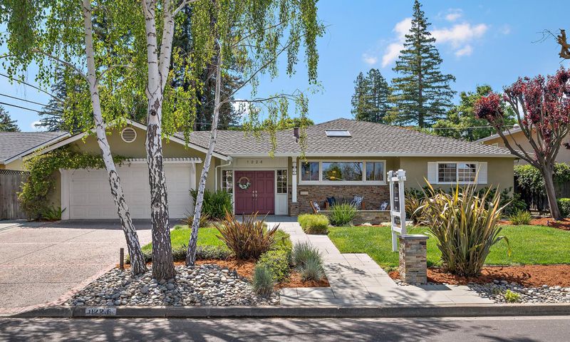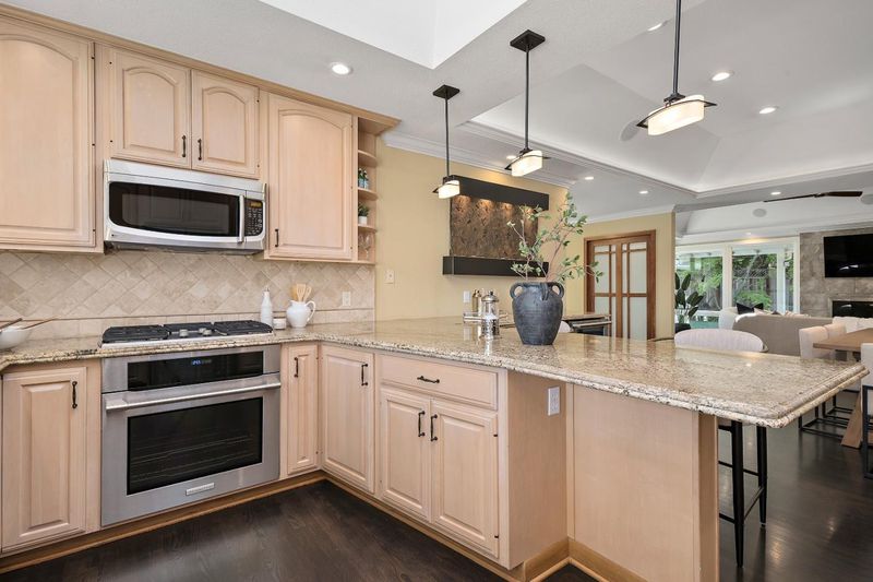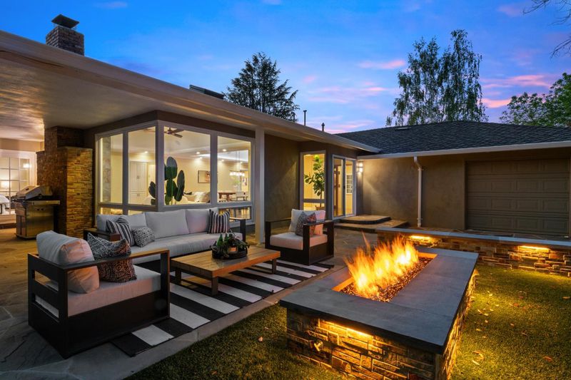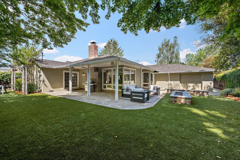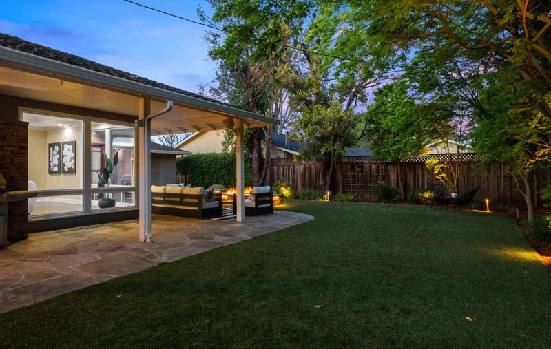 Located on a quiet, tree-lined street in one of Campbells established neighborhoods, this well-maintained single-family home offers a functional layout and thoughtful updates. A custom stone walkway leads to the double-door entry. Features hardwood flooring, open concept living, and abundant natural light from multiple skylights and large windows.The kitchen features, Electrolux gas cooktop, Samsung refrigerator, Bosch dishwasher, LG microwave,Electrolux wine fridge and built-in wine rack. A countertop dining bar with pendant lighting and a large window. The dining area opens to a spacious family room with fireplace, two skylights, and backyard access. The primary bedroom includes a built-in closet organizer and sliding door to the yard. The updated en-suite bath offers a curbless shower; the hall bath includes a tiled shower with bench. Laundry room with LG washer/dryer.The backyard offers a covered stone patio, built-in firepit, artificial turf, maple trees, and garden space. Two-car garage with built-in shelving and an additional garage door for drive-through access.Close to The Pruneyard, Whole Foods, Campbell Park, Downtown Campbell, light rail, and highly rated schools.