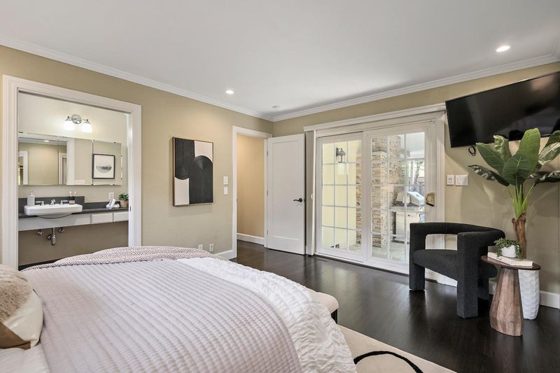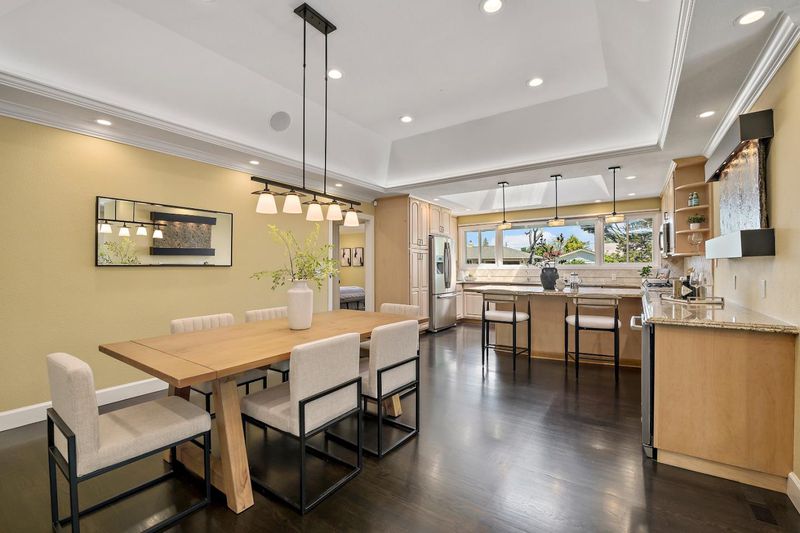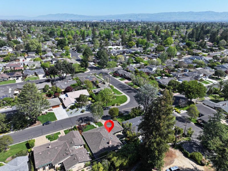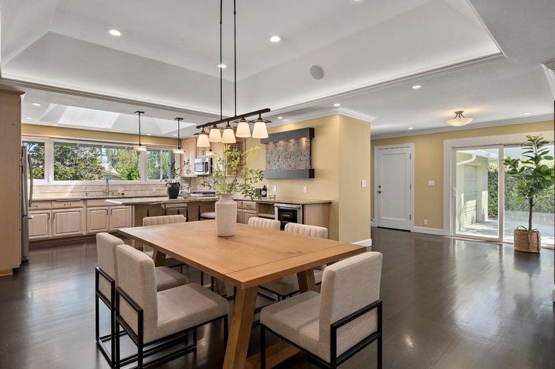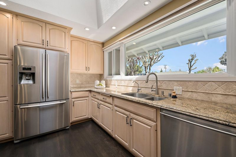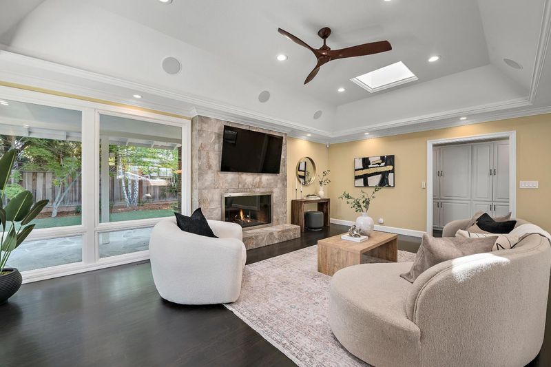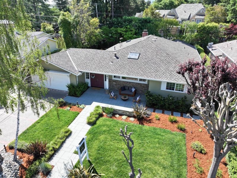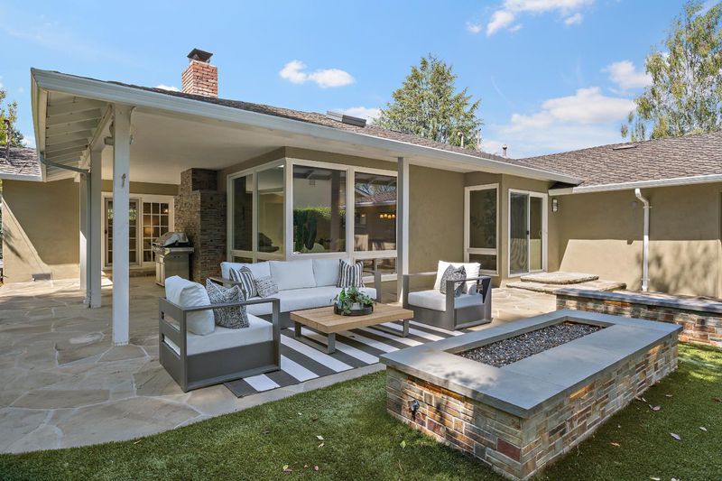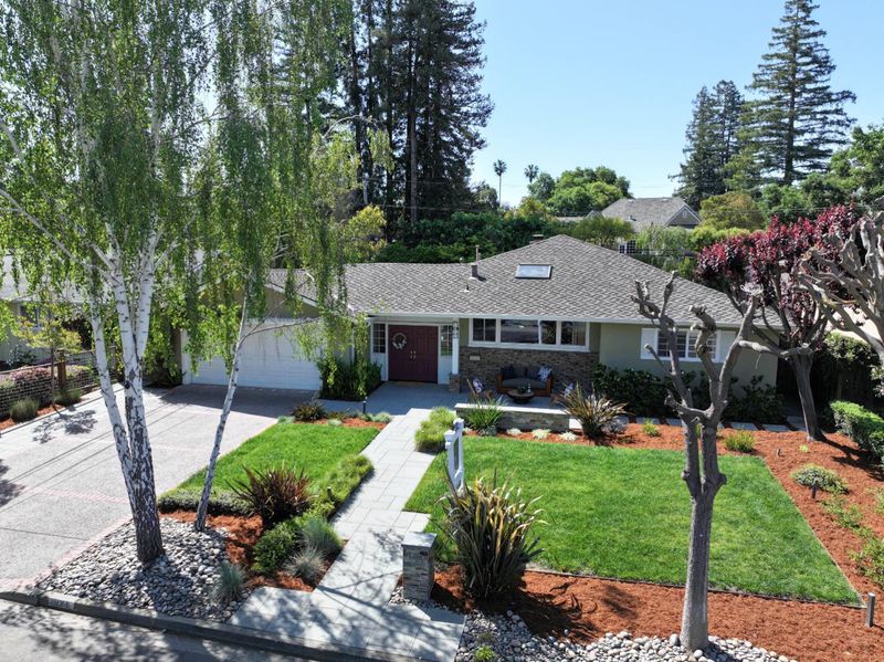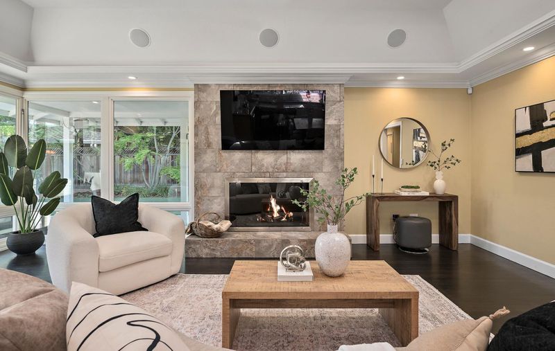 Located on a quiet, tree-lined street in one of Campbells established neighborhoods, this well-maintained single-family home offers a functional layout and thoughtful updates. A custom stone walkway leads to the double-door entry. Features hardwood flooring, open concept living, and abundant natural light from multiple skylights and large windows.The kitchen features, Electrolux gas cooktop, Samsung refrigerator, Bosch dishwasher, LG microwave,Electrolux wine fridge and built-in wine rack. A countertop dining bar with pendant lighting and a large window. The dining area opens to a spacious family room with fireplace, two skylights, and backyard access. The primary bedroom includes a built-in closet organizer and sliding door to the yard. The updated en-suite bath offers a curbless shower; the hall bath includes a tiled shower with bench. Laundry room with LG washer/dryer.The backyard offers a covered stone patio, built-in firepit, artificial turf, maple trees, and garden space. Two-car garage with built-in shelving and an additional garage door for drive-through access.Close to The Pruneyard, Whole Foods, Campbell Park, Downtown Campbell, light rail, and highly rated schools.