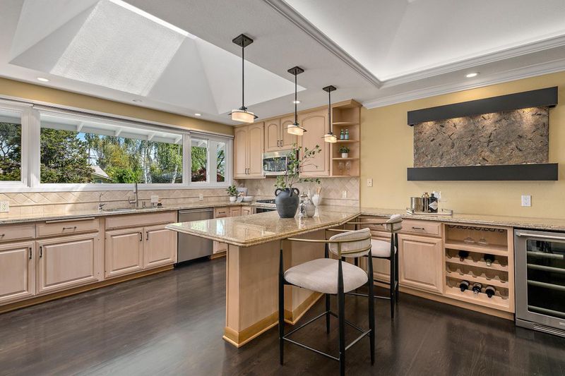 - Dishwasher, Exhaust Fan, Garbage Disposal, Island, Microwave, Oven Range - Built-In, Oven Range - Gas, Refrigerator, Skylight, Wine Refrigerator