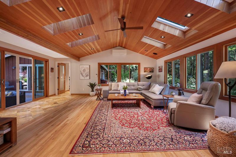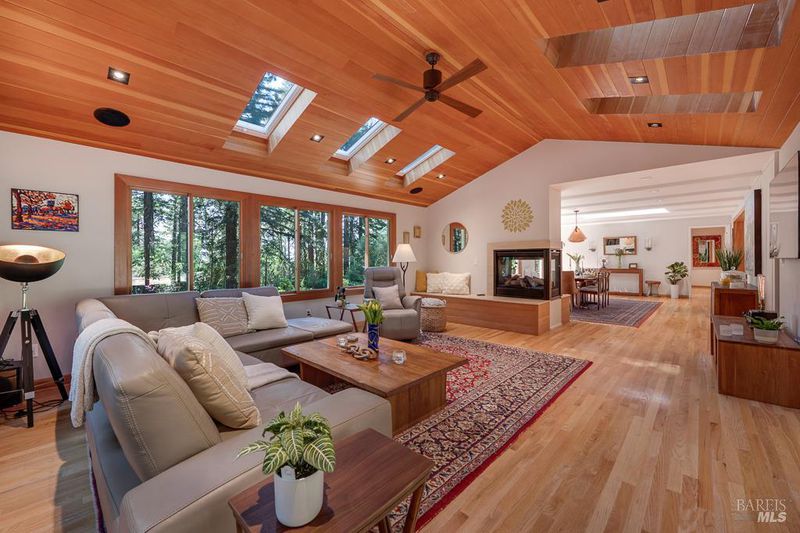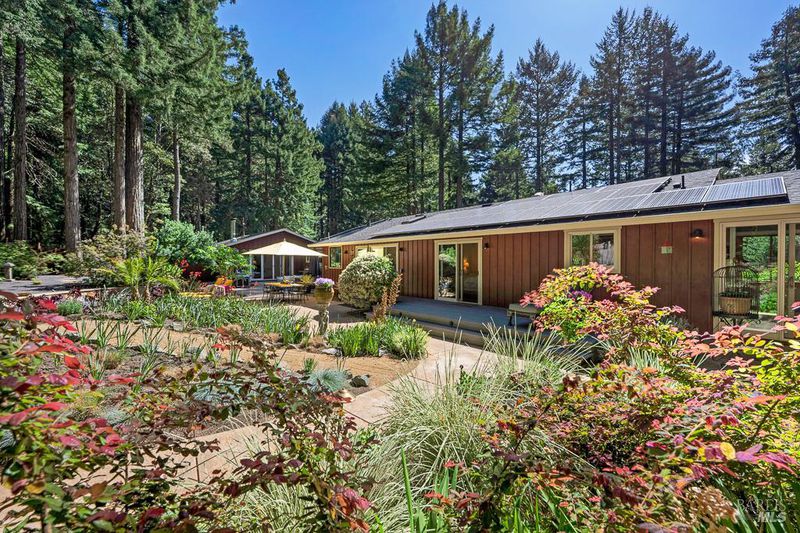 Perched atop a ridge off Coleman Valley Road, behind a gated entrance, lies this exquisite, turnkey, single-level sun-drenched home. Vaulted ceilings, abundant skylights, and gleaming wood floors create an inviting ambiance. Upon entering through the front door, you are greeted by a spacious dining area, an inviting living room featuring a three-sided gas log fireplace, and a seamless transition to the chef's kitchen, breakfast area, and a breathtaking view of the in-ground pool. This oasis is surrounded by meandering paths, vibrant gardens, and stately plantings. A Pinot Noir hobby vineyard and a state-of-the-art hen house enhance the charm and functionality of this exceptional residence. This recently renovated residence features three generously sized bedrooms, two of which boast contemporary and aesthetically pleasing en-suites equipped with radiant floor heating, abundant natural light, and would provide exceptional comfort for overnight guests. Adjacent to the living room is a welcoming office/sunroom featuring a delightful wood-burning stove. Additionally, a dedicated laundry area is conveniently located, featuring a spacious sink and ample counter space, leading to the finished, expansive two-car garage. This garage offers convenient handicap access for those who prefer to avoid stairs. A charming bunk house' is also ideal for overnight guests, particularly children. The property is equipped with a fully functional solar system, battery backup, and an electric vehicle (EV) charger. Two of the most scenic hiking and off-road bicycle trails in the western county are conveniently located less than a mile away at the end of the street. The new biking/hiking trail connecting Monte Rio Redwoods to Willow Creek Road is called the Gateway Trail. Recently legitimized and opened, this trail links the East Sound of Music area to the top of Willow Creek Road, with the project supported by the Redwood Trails Alliance. Key Details Regarding the Area: Location: The trail serves the Willow Creek Road area in West Sonoma County, often accessed from Occidental. Connecting Trails: It links into the broader network within the Monte Rio Redwoods Expansion property. These trails offer approximately 5,400 acres of exhilarating and breathtaking wilderness experiences, extending to the Russian River and Highway 1.
