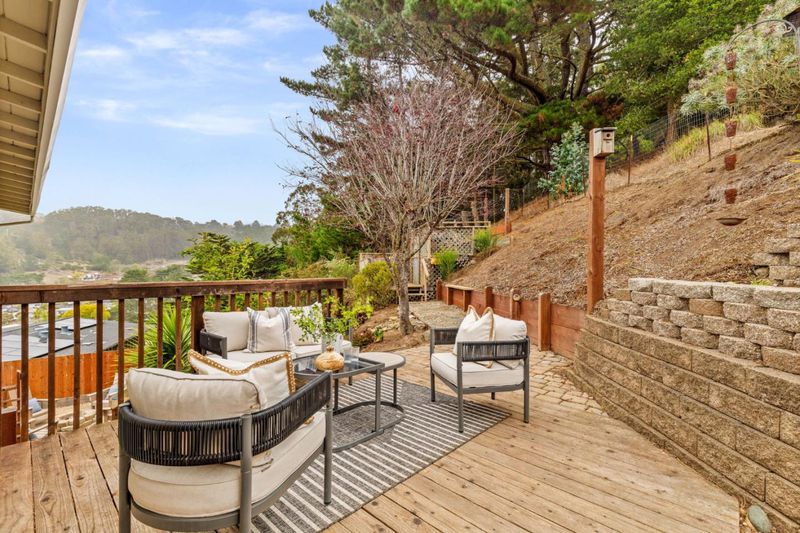 A modern interpretation of the classic Pacifica beach house- sunlit, stylish, and perfectly attuned to its coastal setting with views that stretch from the ocean to the hills. Beautifully updated Linda Mar home with sweeping ocean and mountain vistas. This light-filled residence features an open floor plan, granite countertops, stainless steel appliances, and a dining area that opens to a sunny deck with breathtaking views. The home includes three well-appointed bedrooms and two full bathrooms. The lower level includes a large finished storage room and an oversized garage offering endless possibilities. Enjoy a lush green lawn, raised garden beds, viewing deck, and a cozy gas fire pit- perfect for evenings under the coastal sky. Recent upgrades include a 50-year roof, updated electrical, flooring throughout, and a new sewer lateral. Behind the home, the hills, trees, and wildlife wrap you in nature. Whether you're sipping coffee on the deck, hiking a nearby trail, or watching the fog roll through the valley, there's a sense of calm that makes this place feel like a retreat. Ideally located near beaches, hiking trails and local cafes, 1075 Crespi Drive is move-in ready and made for coastal living.