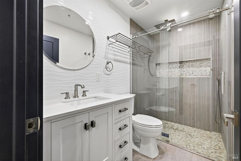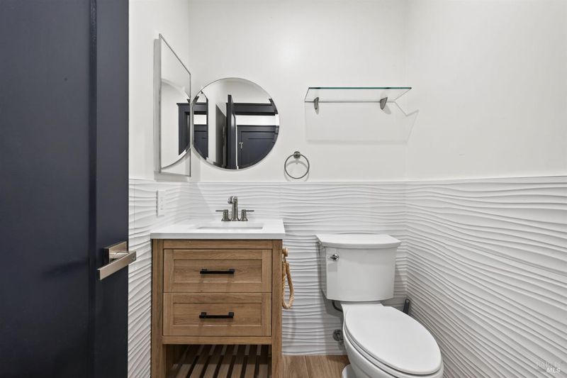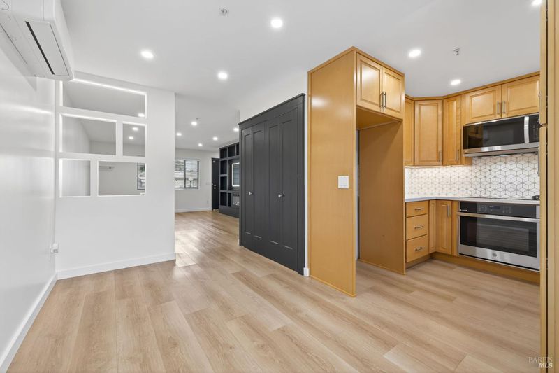 Pride of ownership shines in every detail of this beautifully renovated Rohnert Park townhome. Renovated from top to bottom in 2023, this 2-bedroom, 1.5-bath residence reflects modern style and exceptional attention to detail, with every upgrade thoughtfully executed. The main level features luxury vinyl plank flooring, fresh paint, smooth-finished walls and ceilings with recessed LED lighting, and a custom entertainment center. A striking partition wall with inset openings separates the living and dining areas while allowing natural light to fill the space. The kitchen has been fully reimagined with new cabinetry, modern appliances, and high-end finishes designed for both comfort and convenience. Upstairs, 2 spacious bedrooms are complemented by a spa-inspired bath with heated floors and a flush-entry shower. A sleek half bath downstairs adds functionality for guests. Custom closets provide smart storage solutions, while solid-core doors, dual-pane windows, and new sliding doors enhance efficiency and quiet. Adding to its rarity in this community, the home is equipped with a full AC system, featuring mini-splits in every room for personalized climate control year-round.