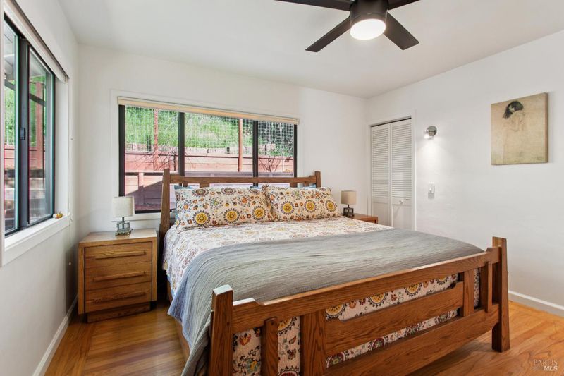 Charming and stylish single-level home in the highly desirable Bret Harte neighborhood, known for its wonderful sense of community, central location and great weather. Located just a few houses from Bret Harte Park and set on one of the widest streets in the neighborhood, this well-cared-for 3-bedroom, 2-bath residence offers a flexible floor plan with both formal living and family rooms plus a mini office. It is rare to find a 3/2 AND office AND family room in this price range. The updated kitchen features crisp white cabinetry, stainless appliances, and abundant natural light. Hardwood floors run throughout much of the home, while the inviting living room with fireplace and the sun-filled family room with walls of glass create warm and comfortable spaces for everyday living. Outdoor living shines with a spacious deck, level lawn, and a whimsical backyard fort/doll/WFH house. Everyone's favorite neighborhood... Sat AM yoga, happy hours, music events and more - if you know, you know. The beautifully landscaped yard also includes mature lemon, peach, apple, and fig trees. Additional highlights: new roof installed in summer 2024 and furnace & retaining wall in 2018, great weather, and an exceptionally convenient location with easy access to Bon Air Shopping Center, downtown San Rafael, and commute routes.