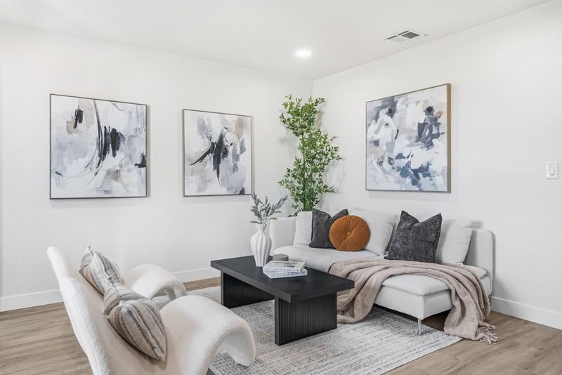 Stunning End-Unit with Private entrance in the prestigious Miramar Terrace gated community! Fully remodeled in 2021, this bright and spacious home features an open living/dining area with high ceilings and tons of natural light, leading to a large private balcony. The remodeled kitchen boasts quartz countertops, beautiful backsplash, white shaker cabinets, and SS appliances. Bathrooms are upgraded with sleek fixtures, quartz counters, and designer tile. The Expansive master suite offers vaulted ceiling, dual closets, and dual-sink vanity. Second bedroom includes walk-in closet. Additional highlights include recessed lighting, plantation shutters, central A/C, in-unit laundry, and extra storage unit. Two parking spaces plus ample guest parking. HOA covers water, gated entry, security patrols, garbage, gas, and amenities including pool, spa, clubhouse, sauna, and gym. Ideally located in the heart of Santa Clara near Santana Row, Valley Fair, Nob Hill, Ponderosa/Eklund parks, restaurants, and major tech companies.