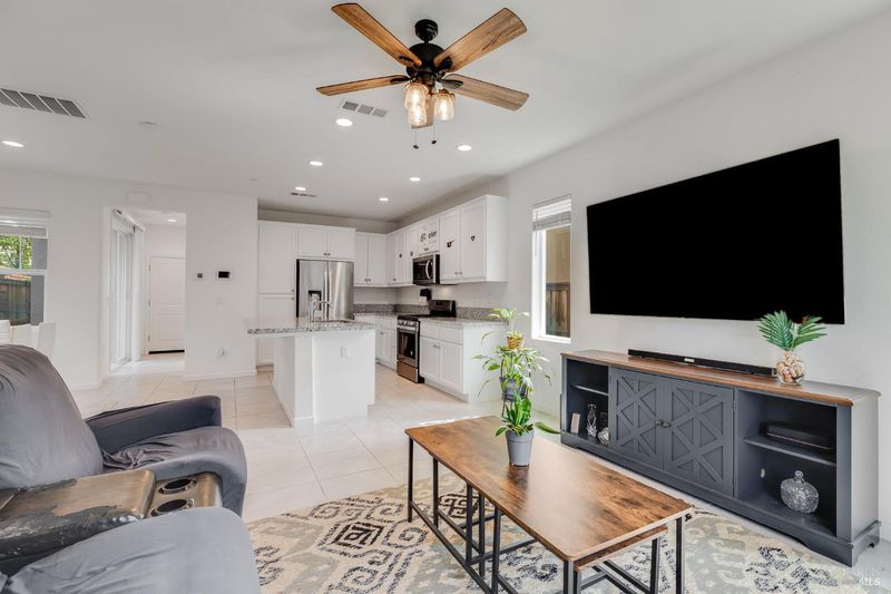This home was intentionally designed for comfort and functionality. Built in 2020 with modern touches and builder upgrades, this 3-bedroom, 2.5-bathroom home features energy-efficient appliances, recessed lighting throughout, an open-concept layout, and smart home technology. Neutral interior tones pair beautifully with the large-format tile flooring that flows throughout the home. Marble countertops enhance the bathrooms, while granite counters complement the upgraded luxury white cabinetry in the kitchen. The location offers a wonderful balance of suburban convenience with a touch of rural serenity. Enjoy close proximity to shopping, restaurants, Dutch Bros coffee, family-owned farm stands and markets, wineries, community events, Travis AFB, and convenient commuting to San Francisco and Sacramento. The nearby community park is a true highlight, featuring lush green space, water play areas, play structures, outdoor sports amenities, covered picnic areas, and BBQsperfect for gathering and enjoying the outdoors. Don't miss the opportunity to own this well-designed, low-maintenance homeschedule your showing before it's gone.