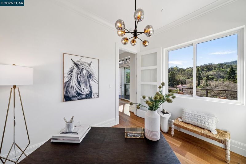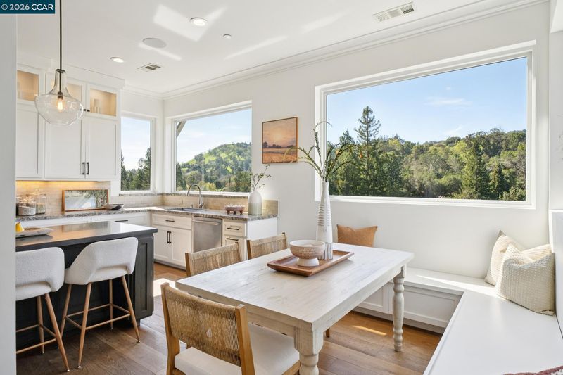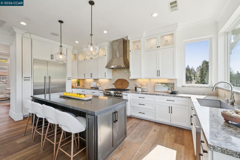 Perched in Lafayette’s Reliez Valley, 120 Arbor View Lane offers 3,450 square feet of elevated living framed by sweeping hillside views. Soaring 12'+ ceilings and expansive windows flood the home with natural light. The versatile floor plan includes 4 bedrooms, 3.5 bathrooms, formal dining, a private office, and a separate media/recreation room — designed for both everyday comfort and effortless entertaining. The chef’s kitchen is appointed with Thermador appliances, a generous island, and a built-in banquette, opening seamlessly to the great room with fireplace and indoor-outdoor flow. Outside, enjoy a private deck and patio, built-in barbecue, and wood-fired pizza oven, all set against the serene valley backdrop. A gated entry to Arbor View Ln enhances the privacy and security of this estate. Minutes from downtown Lafayette, top-rated schools, and commuter routes, this home delivers scale, setting, and lifestyle in one of Reliez Valley’s most desirable enclaves.