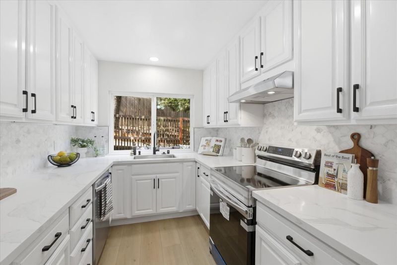 Experience SPACIOUS ELEGANCE in this beautifully renovated 5-bedroom, 2.5-bath, 1936sf home in Cupertinos most desired gated community - De Anza Oaks! Nestled in a quiet cul-de-sac, this home is just a few doors down from the community playground. This LIGHT-FILLED & MODERN residence offers an airy ambiance throughout. The best in school academics with Stevens Creek ES (8), Kennedy MS (8) & Monta Vista HS (10)! Remodeled throughout with gleaming wood-like plank floors & fresh interior paint. The GOURMET CHEFS KITCHEN showcases white shaker cabinetry, new quartz countertops, designer backsplash & generous storage, seamlessly connecting to the main living areas. Large bedrooms offer flexibility for office, guests or growing needs. The PRIVATE BACKYARD features modern landscaping with paver patio & eco-grass ideal for entertaining or relaxing. Well-Appointed Features include copper plumbing, dual pane windows & a finished 2-car garage with newly epoxied floors. LOW HOA w/ resort amenities: Huge Park, Playground, 2 Pools, Big Clubhouse & Trails secured behind gates. Enjoy foothill beauty with Silicon Valley conveniences at your fingertips. Moments from Whole Foods, Memorial Park, Trader Joes, De Anza College, Main Street & convenient access to major employers. Welcome Home!
