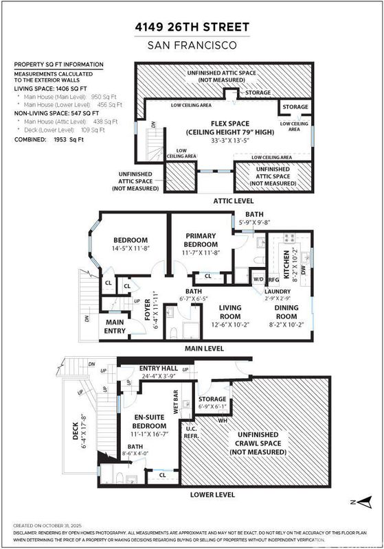 Fully renovated single family home in prime Noe Valley location. This home features two bedrooms and two baths on the main level with an additional studio bed room and bathroom on the lower level. Additionally there is a built out unwarranted attic bringing the total usable square footage to 1844sqft.