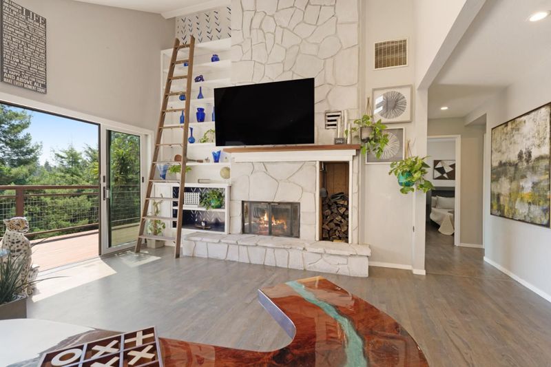 Great for multigenerational living! Tucked into the quiet beauty of Scotts Valley, but just minutes from town, this extraordinary estate invites you to live without compromise. At its heart, a meticulously curated 5+bed/3 bath main residence that is designed to live as one grand home or two distinct spaces. With spacious and sun drenched decks off the bedrooms and living spaces, enjoy the true meaning of indoor-outdoor living. Primary suite is on top level with its own laundry, bathroom, office and loft space. Lower level has 3 rooms, 1 bathroom, living area, full wet bar, and deck with hot tub! Conveniences such as large home theatre will make it so you never want to leave home. From the private vineyard to the mature fruit trees, sauna, hot tub, and multiple outdoor entertaining areas, step into a world of your own where you really can "have it all" at 55 Hidden Meadow.