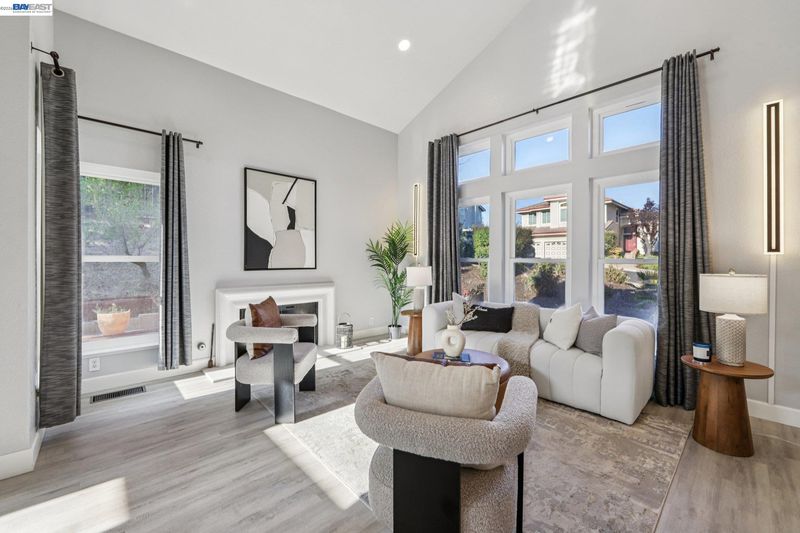 Located in the sought-after Highlands community of Dublin, this updated luxury North East–facing home sits on an oversized lot with over $250k in designer upgrades. The meticulously landscaped backyard offers a resort-style retreat with seasonal fruit trees, automatic sprinkler system, custom side yard w/turf, serene seating area, sparkling pool/spa, and a covered outdoor room framed by rich redwood planters. Inside, enjoy a formal living room with soaring vaulted ceilings, warm and inviting family room, updated wet bar w/wine cooler, and a bed w/full bath on the main level. The brand-new modern kitchen features quartz countertops, 36-inch 6-burner gas cooktop, and a walk-in pantry. The expansive primary suite serves as a private retreat with a fireplace and a spa-inspired bath showcasing vaulted ceilings, a stall shower, heated floors, and a towel warmer. A large upstairs bonus room offers flexible living as a third lounge, media room, or a bedroom. The 3rd-car garage has been converted into a home gym. Additional highlights include a paid-off solar system w/EV charger, large dual-pane windows that fill the home w/natural light, 3 fireplaces, smart home features, a prime location w/easy access to Silicon Valley via Hwy 580/680/ BART, minutes from scenic trails, shopping, dining.