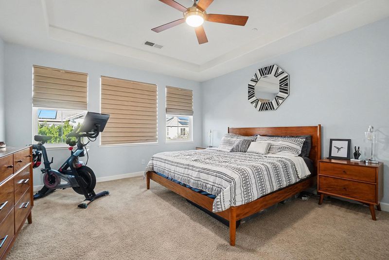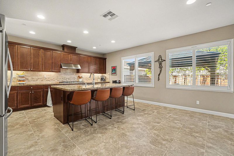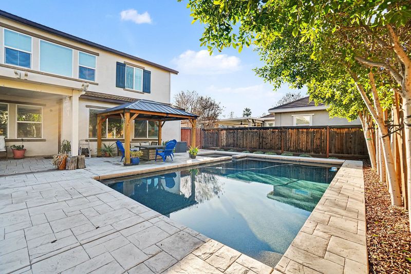 This Tri Pointe home in the Hawthorne subdivision has it all! Perfectly positioned at the end of the street and across from the small community park, offering a great sense of space. There's a trail nearby to explore or if you prefer a slower pace, a sweet front porch for taking in the view while enjoying your favorite beverage. Inside there is a bedroom and bathroom on the main level plus a half bath for guests. A convenient built in desk offers an additional office space or homework zone. In addition to the formal dining room, there is an eat-in kitchen that connects to the spacious family room. Upgrades in the great room include granite slab counters, stainless steel appliances, pantry, fireplace & plantation shutters. Upstairs you'll find a loft for additional living space, gym, or hobby room. 3 bedrooms, including the primary suite and additional bathroom plus laundry room complete the second level. The backyard is spacious and landscaped beautifully to create privacy as you enjoy the newer built-in pool & spa or alfresco dining under the covered patio. You'll have plenty of room for multiple vehicles and storage in the tandem 3 car garage. Owned solar. All of this and a great neighborhood too!