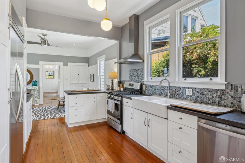 Prime Bernal - between Holly Park and Cortland on a quiet little street. 100' south facing, fully detached lot, with amazing gardens, great natural light, and City views. Transitional modern style with high coved ceilings, wainscoting, wood floors, farmhouse style kitchen and updated bathrooms. Seamless indoor/outdoor flow to private, sun-kissed back yard gardens. Tranquil, quiet & serene - Sonoma in the City! Well maintained, with one-year new roof! Upper home configured as a 3Bd/2Ba, lower home as a 1Bd/1Ba, and commonly known as 102-104 Santa Marina, with a one car garage.