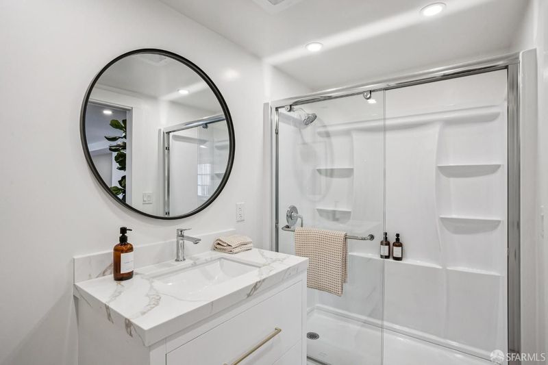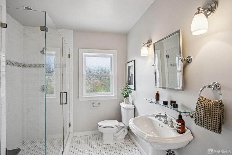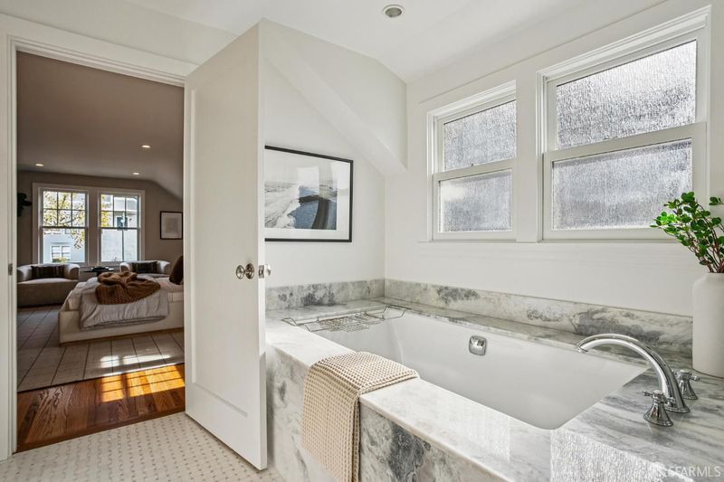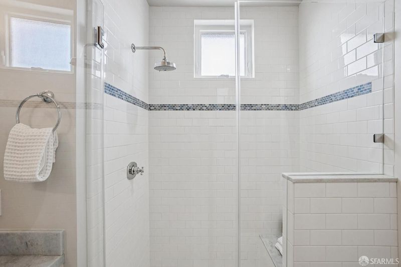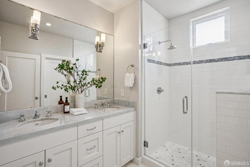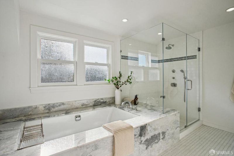 - Closet, Double Sinks, Marble, Quartz, Shower Stall(s), Tile, Window