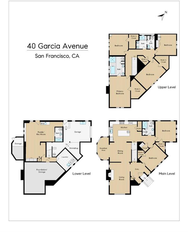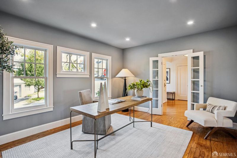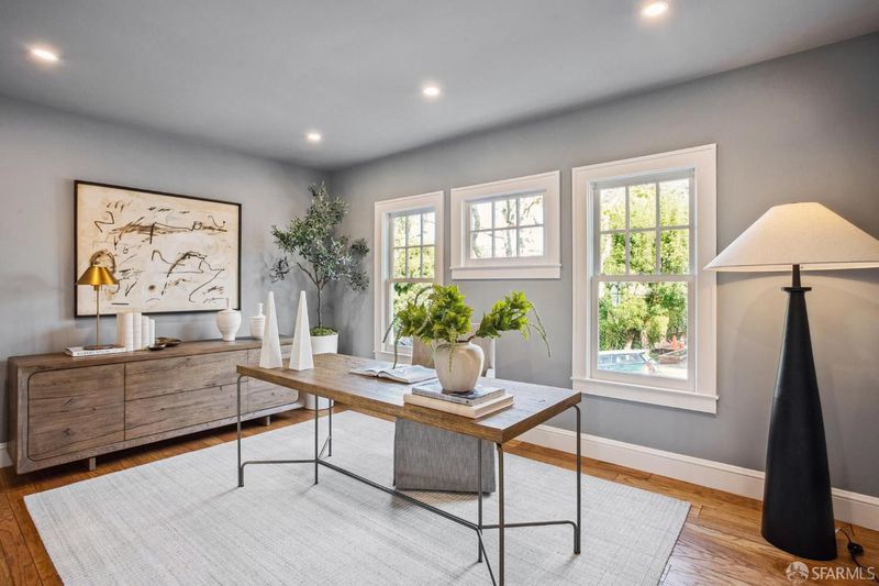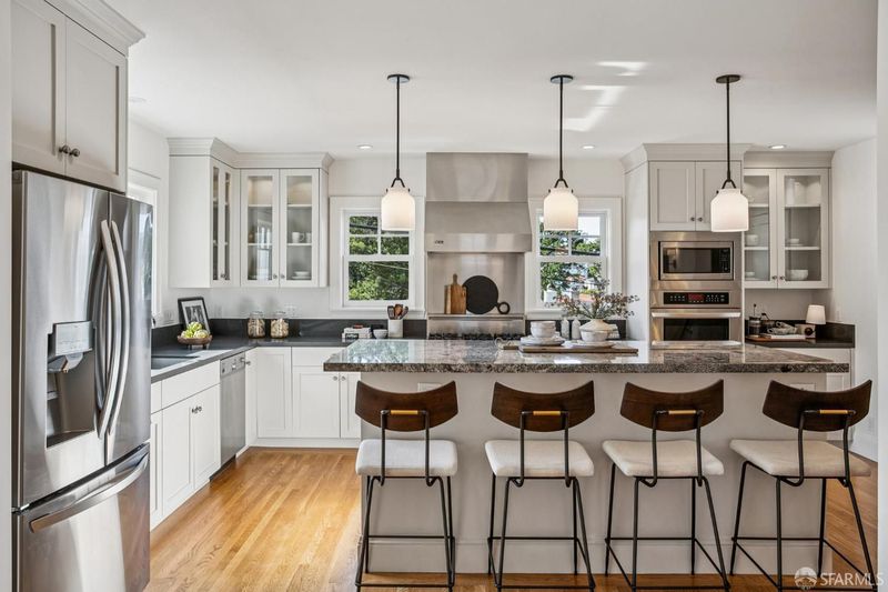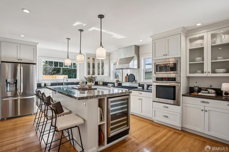 Grand Traditional Home: This beautifully remodeled family-friendly home offers abundant space, plentiful natural light, and a layout designed for comfortable living. A gracious formal entry hall leads to spacious formal living and dining rooms filled with sunlight from picture and bay windows. At the heart of the home, the open chef's kitchen includes a large center island, slab stone countertops, a walk-in pantry, and premium Viking and Miele appliances. Six bedrooms, four on the upper level and two on the main floor, are complemented by four full baths and an well-designed half bath. Adding flexibility, one of the main-level bedrooms is currently configured as a private office with French doors, and the other serves as a guest bedroom. Upstairs, the primary suite offers privacy and comfort with a large walk-in closet, a spa-style bath with dual sinks, a deep soaking tub, and an oversized walk-in shower. The upper level's other bedrooms are also generously sized with walk-in closets and windows that contribute to the home's undeniable warmth. Hardwood floors, recessed lighting, dual-paned windows, and upgraded electrical and plumbing systems show the recent and meaningful improvements made throughout. The lower-level family/rec room adds versatility with a separate entrance, an attached full bath, a wine bar and beverage refrigerator. There is also a dedicated laundry room conveniently opposite the lower-level stairs. Outdoors, you'll enjoy a fenced yard with a broad deck and stone patios that create a wonderful setting for dining, gardening and entertaining, while the attached garage contains a workspace and even more storage. This exceptional home offers refined living in an optimal location, just minutes from popular West Portal Village dining and shops, excellent local schools, Stonestown Mall, Whole Foods, 280/101 freeways, and BART/Muni.