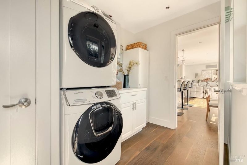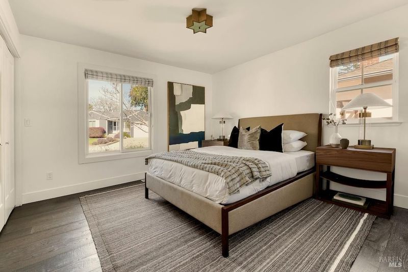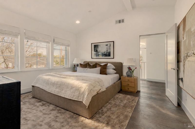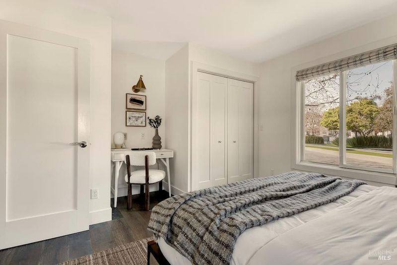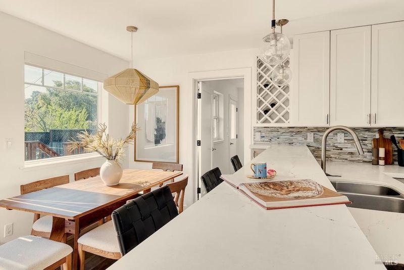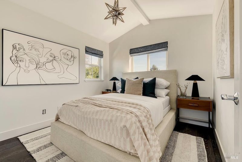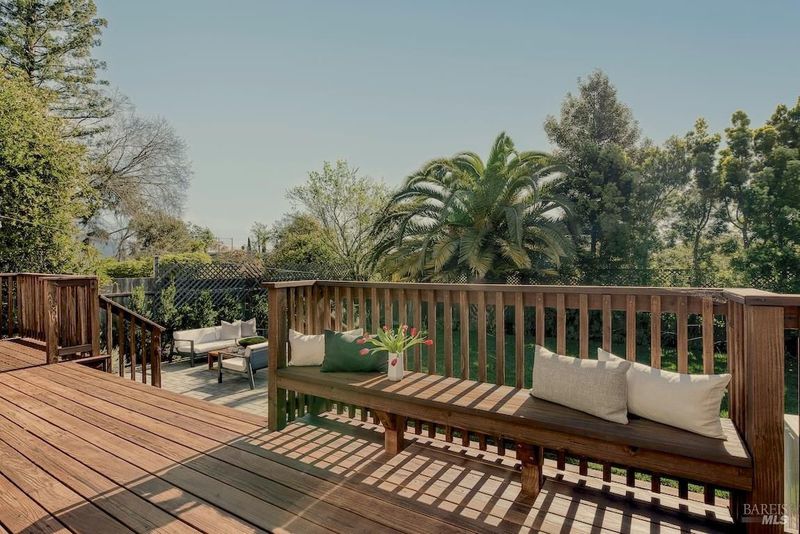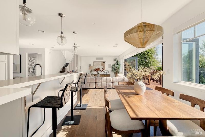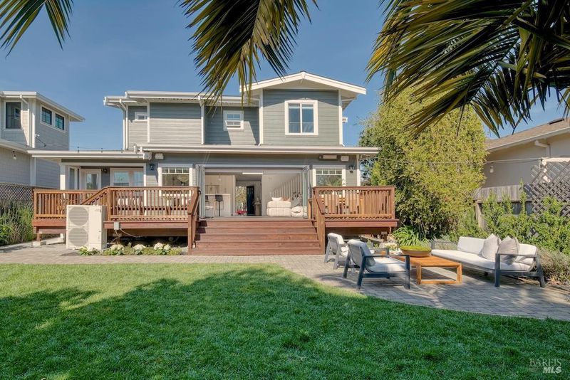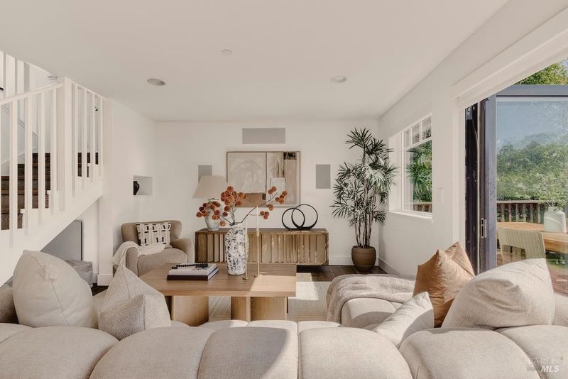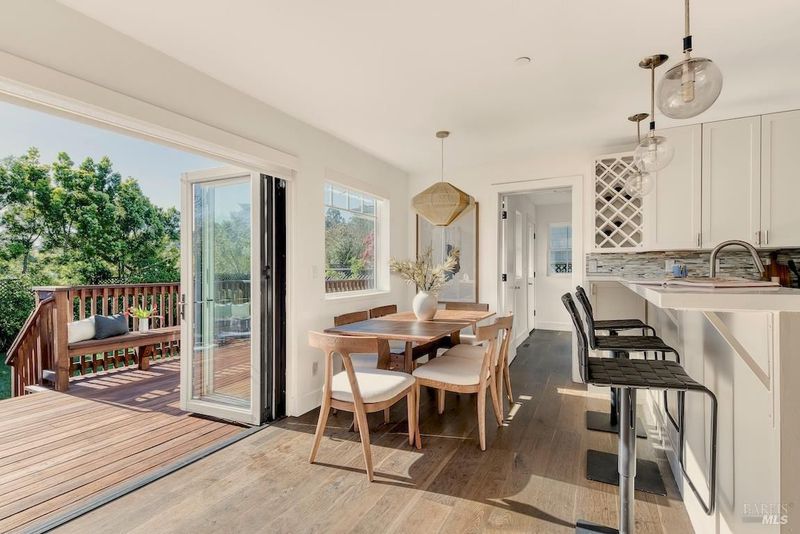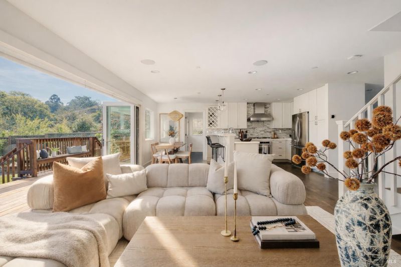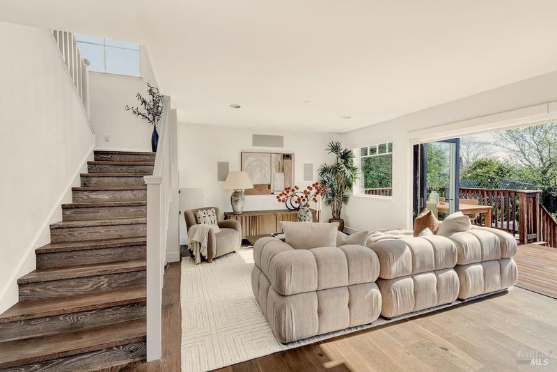 Where Sunny Backyard Afternoons Meet Downtown Larkspur Evenings! Nestled in the highly sought-after Heather Gardens neighborhood, this beautifully updated residence offers the rare combination of newer construction, thoughtful design, & an exceptional lifestyle location. Completely transformed in 2014 & further refined in 2022, the home showcases a well-proportioned, highly livable floor plan designed for modern living. Rich, dark-stained wood floors run throughout, grounding the light-filled interiors with warmth & understated elegance. Newly renovated bathrooms, a new HVAC system, solar panels, & great, thoughtfully integrated storage enhance both comfort & functionality. Designed to blur the line between indoors & out, a NanaWall system opens wide to a generous, sun-drenched backyard retreat. A spacious patio & great deck create multiple areas for entertaining & relaxation, while a raised vegetable bed offers the opportunity for homegrown harvests. At the heart of the yard, a dramatic palm tree rises as a sculptural focal point, lending a subtle resort-like ambiance to this private, landscaped oasis. Sunlight fills the home from morning through evening, with serene views of Mt.Tam from select rooms. The open-concept main level is ideal for gatherings, both large & intimate. Upstairs, the vaulted primary suite captures Mt. Tam views and a sense of retreat, while two additional bedrooms & a full bath complete the upper level. A 4th bedroom on the main floor offers flexibility for guests or a home office. The garage provides versatile extra space, perfect for a gym, studio, or playroom. Perfectly positioned in the heart of Marin County, this home is just moments from the scenic Larkspur-Corte Madera bike path & nearby parks, including a secret Heatherwood Playground & Picnic Park just around the corner, with easy access to historic downtown Larkspur. Beloved local destinations such as Equator Coffees, Boichik Bagels, Perry's, Picco, and Farm House Local line the charming streets alongside artisan shops & farm-to-table dining. Enjoy a film at the iconic Lark Theater or explore nearby trails on Mount Tamalpais. Completing the offering is proximity to the newly built Library & Community Center & access to award-winning schools. Enjoy Larkspur's near-perfect year-round climate and an effortless connection to both nature & town. A rare home where indoor-outdoor living, a sun-filled yard, thoughtful design, privacy, and true walkability come together with ease.