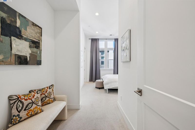Built just three years ago, this impeccably designed 2-bedroom, 2.5-bath residence offers approximately 1,307 square feet of thoughtfully curated living space. The home features over $40,000 in premium builder upgrades, enhancing both comfort and refinement. Notable enhancements include upgraded wall insulation for superior sound attenuation, wide-plank luxury vinyl flooring, custom cabinetry, and a designer tile backsplash that anchors the gourmet kitchen. Recessed lighting throughout, number-lock entry doors, and HDMI pre-wiring provide a seamless blend of sophistication and convenience. Perfectly situated near Warm Springs BART, major freeways, fine dining, and upscale shopping, this residence exemplifies modern living within one of Fremont’s most coveted communities. Experience the perfect balance of contemporary design and everyday luxury—your new home awaits.