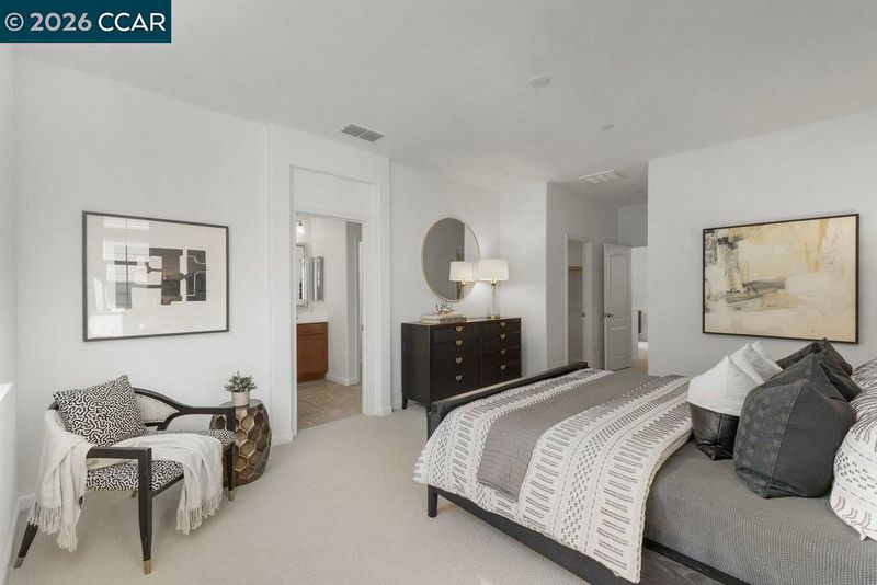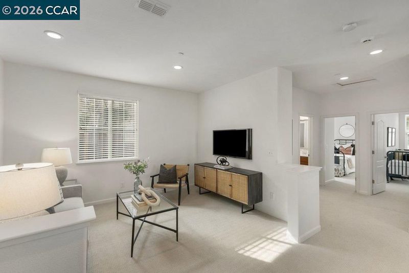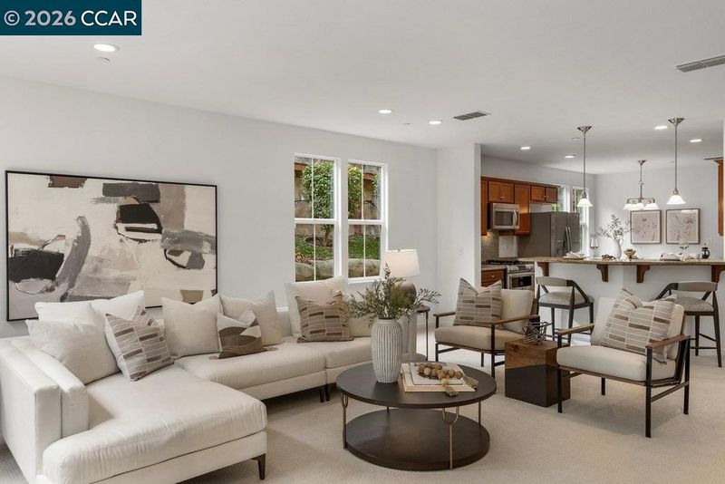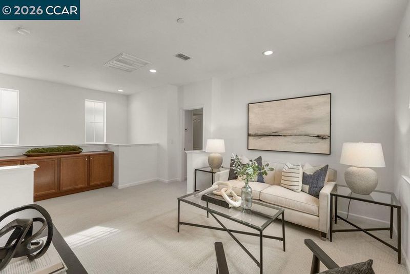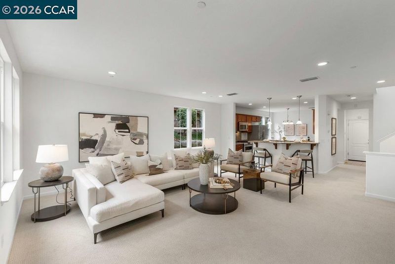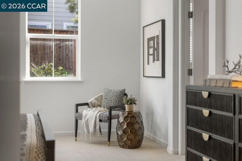 Welcome to this light-filled two-story home offering three bedrooms plus a versatile loft, 2.5 baths, and a two-car garage. Fresh contemporary interior paint and brand-new carpet create a clean, move-in-ready feel, while high ceilings throughout enhance the sense of space and natural light. The main living areas flow easily for everyday living and entertaining, and the flexible loft is ideal for a home office, playroom, or media space. Step outside to a private patio yard enclosed by a lush vegetation wall, complete with a soothing ambiance fountain. Enjoy your own quiet retreat. Well-designed, refreshed, and inviting, this home blends comfort, functionality, and privacy in a convenient Martinez location. The HOA community offers a playground and nicely manicured grounds throughout. The community is minutes from 680 freeway access north to Benicia and south toward Walnut Creek.