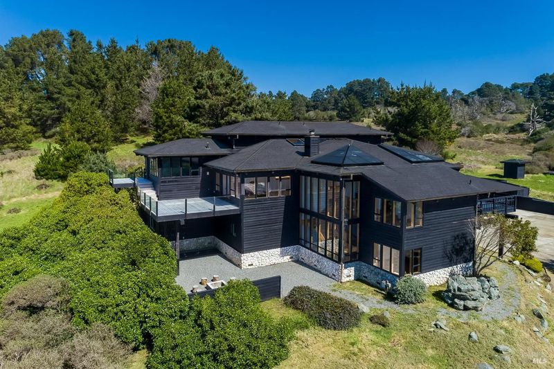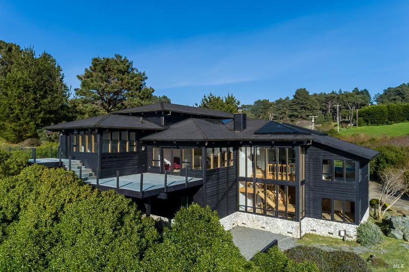Custom spectacular ocean view residence minutes north of Mendocino. An architectural masterpiece with a panoramic view of the Pacific Ocean and full sunset experiences. Located on a private road with luxury homes well spaced and far from the sounds of the highway. Enjoy the crashing waves from the hillside location. A short drive to several state parks with endless walking trails and recreational features. Natural wood finishes throughout the over 4000 square feet of living space. Spectacular views from every room, large wraparound decks and private gardens. Large bedrooms with high ceilings. Huge garage with room for multiple vehicles. Inviting creekside house would make an ideal office or yoga space. Enjoy one of the finest locations on the Mendocino Coast.