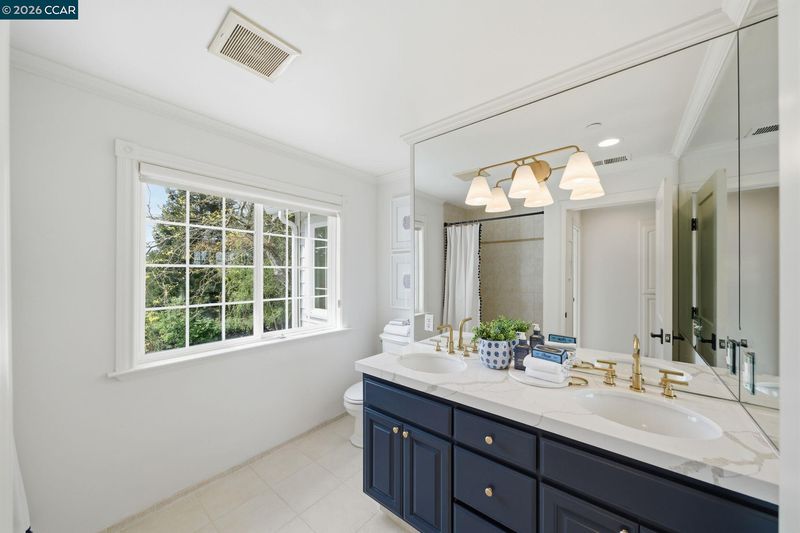 Timeless East Coast–inspired architecture meets California living at 3 Honey Hill Court. This home spans approx. 4,354 sq.ft. with 6 bedrooms and 4.5 baths. Five bedrooms are located upstairs, including a spacious primary suite with sitting room and walk-in closet, plus four additional bedrooms. An en-suite office or guest room on the main level offers ideal flexibility for working from home, hosting guests, or extended family. Formal living and dining rooms offer elevated entertaining spaces, while the updated kitchen that opens to the family room is a perfect setting for everyday living. Throughout the home custom millwork, wainscoting, coffered ceilings and designer-inspired finishes add warmth, character and timeless style. French doors open to both front and back yards, creating seamless indoor-outdoor flow for entertaining, outdoor play, and enjoying views of the Orinda hills. The backyard is anchored by a gorgeous stone wood-burning fireplace, perfect for cozy evenings and gatherings. A sport court next to the garage provides a play space for all ages. Ideally located minutes to Highway 24, BART, Orinda Country Club, and Sleepy Hollow School, this special property offers a rare blend of timeless architecture, thoughtful updates and an exceptional Orinda location.