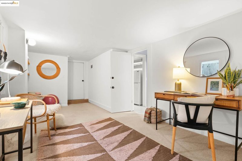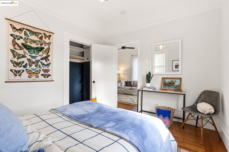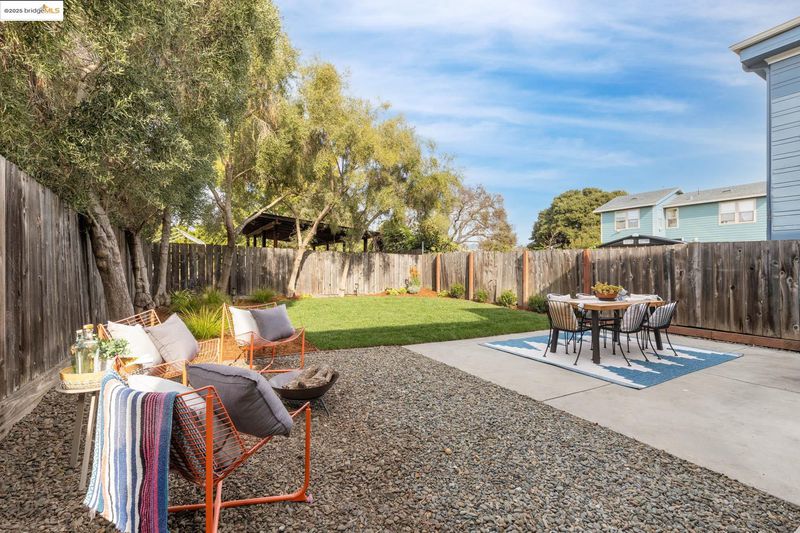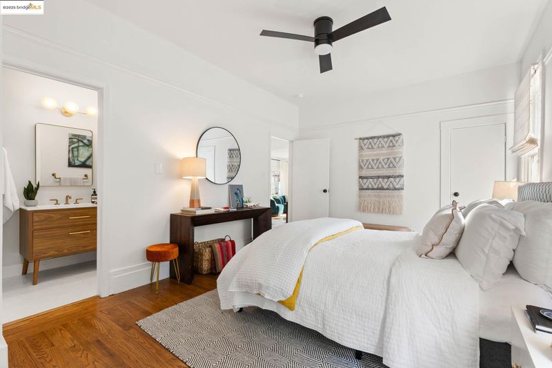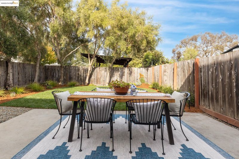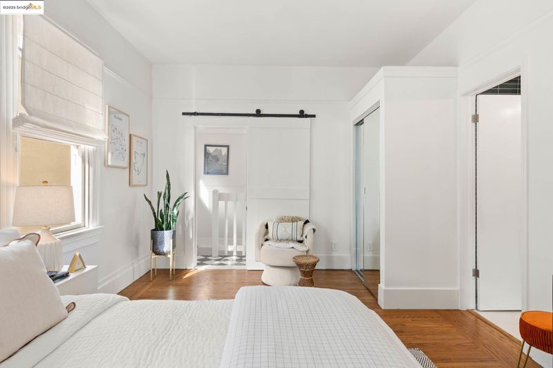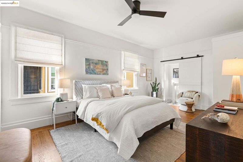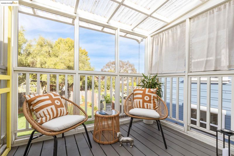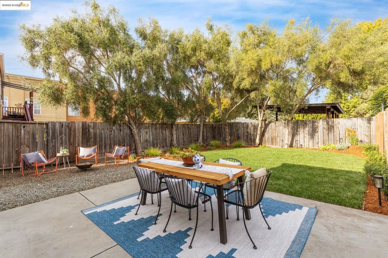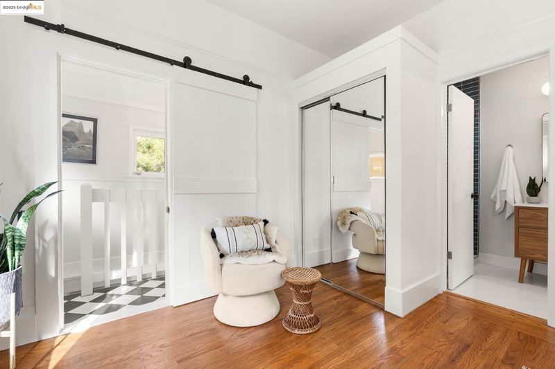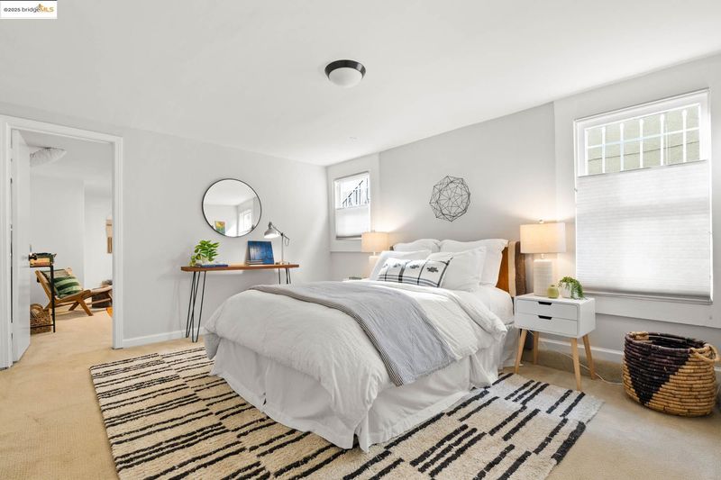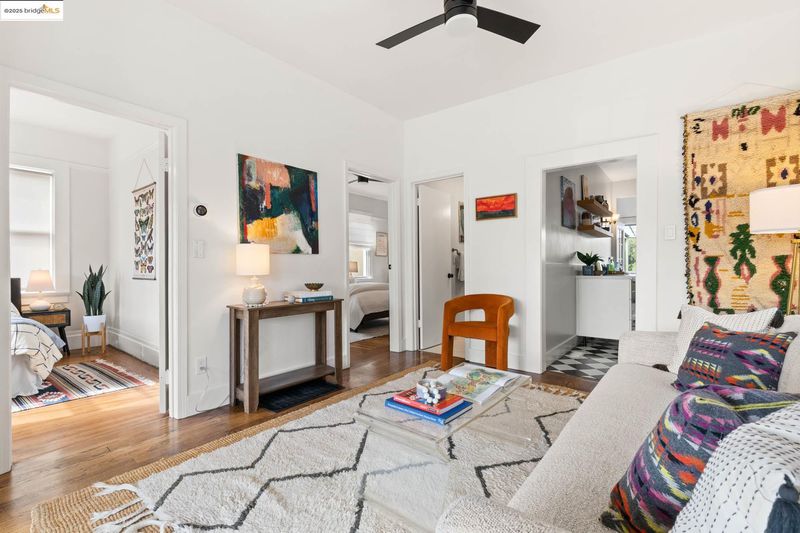 Welcome to 954 46th Street, a beautifully updated California bungalow blending timeless charm with modern style. The rich green façade with crisp white trim and lush, mature landscaping sets the tone. Inside, sunlight fills the oversized living area, highlighting beautiful wood floors. Two spacious bedrooms boast tall ceilings and plenty of windows! Conveniently located, the gorgeously remodeled bath features Pottery Barn vanity, Fireclay tile and Brizo faucet. The kitchen impresses with green and white cabinetry, stone counters, checkerboard floors, built-in desk, and eat-in area that opens to the backyard. Enjoy a screened-in deck, flat yard with large grassy lawn, and patio for outdoor dining and entertaining. The finished lower level offers multiple spaces that can be used for guests, media room, office, gym. Downstairs, you will also find a bath and kitchenette. Attached garage with interior access. Modern touches include solar panels, Nest system, Tesla car charger, on-demand water heater. Sidewalk & sewer compliant! Prime location near Lower Rockridge, Temescal, and Emeryville—close to dining, shops, and BART, commuting options. Temescal Community Garden is one block away. With a Bikescore® of 99 and a Walkscore® of 89, what a wonderful place to call home.