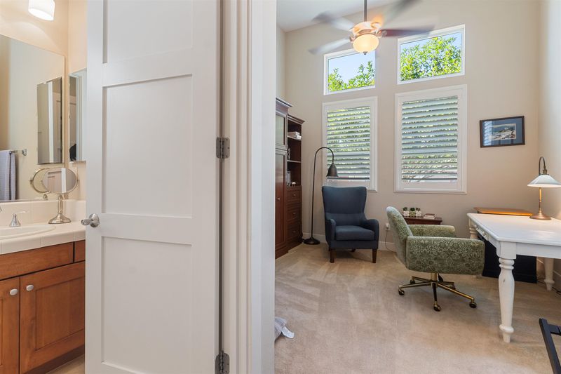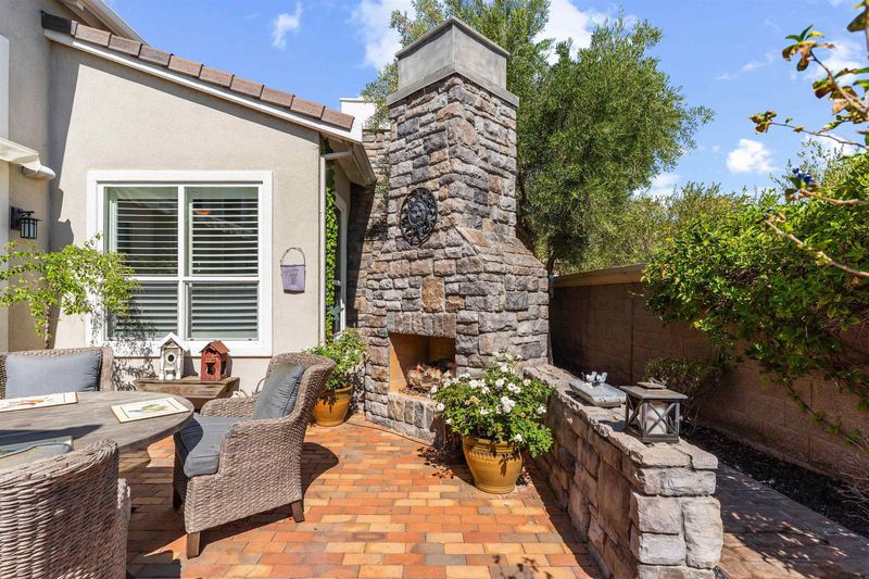 Welcome home!!!! Once you enter this "Charming Home" you are greeted with an abundance of natural light. The high ceilings and spacious floorplan offer's the most decadent space for entertaining. The kitchen boasts an expansive island for all your entertaining needs. Stainless appliances, dual ovens, gas range, Solid Wood Cabinetry with pull out drawers and granite countertops. Adjacent to the kitchen is a cozy English sitting area with gas fireplace to curl up with a book and cup of tea. The open concept kitchen opens to a spacious family room perfect for all gatherings. When you step outside, you will find the most quaint and charming space. The brick patio and brick gas chimney fireplace is the perfect place to enjoy a glass of wine while you hear the relaxing sounds of the large, tiered fountain. Take a stroll down the walkway to the additional seating area under the wisteria covered trellis. This 2-bedroom, 2.5-bath home also features a spacious dining room with large blown glass chandelier, office, indoor laundry room with sink, hardwood and tile floors, ceiling fans, coffered ceilings in master bedroom, murphy bed in secondary bedroom, plantation shutters, epoxy flooring in the garage with built in cabinetry and so much more...