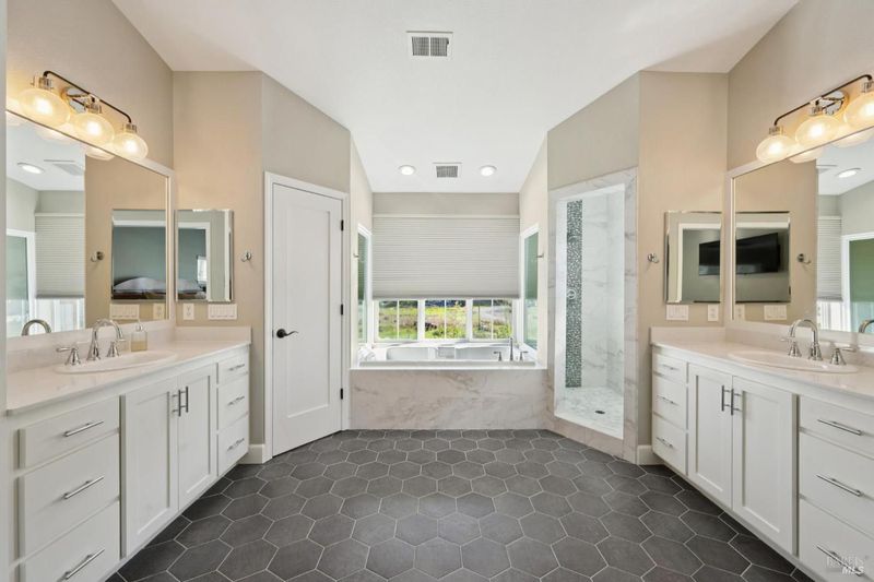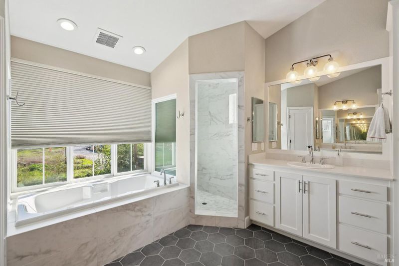 This beautifully updated Wine Country home with a detached ADU is an entertainer's dream. An open floor plan and thoughtful, efficient layout make every square foot feel intentional and usable. Truly turnkey, the home showcases tasteful upgrades at every turn. The updated kitchen features a stunning quartz-topped island with bar seating, perfect for casual dining or gathering with guests. The completely reimagined primary suite offers a spa-like bath with a frameless glass shower, soaking tub, and walk-in closet. Additional upgrades include French oak wood flooring, a new A/C unit, recently updated appliances, modern lighting and fixtures, and a refreshed fireplace. Step outside to a redesigned backyard built for relaxation and entertaining, featuring multiple bar-style seating areas, an outdoor lounge with fire pit, striking horizontal fencing, and abundant sunshine. Enjoy mountain and sunset views from the upper level, while the detached and private ADU provides a flexible option for rental income, guests, or a private family retreat. Additional highlights include fenced in RV parking, a generous lot size, professional landscaping, a jacuzzi, and a prime location, just 20 minutes from the Healdsburg Plaza, 15 minutes to Yorty Creek recreation area, and minutes from some of Wine Country's most beloved wineries.