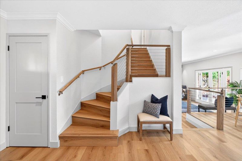 This Cambrian home is an absolute standout. The exterior has been transformed with a brand-new front porch, fresh landscaping, driveway pavers, and beautiful new garage and front door. Plus important behind-the-scenes upgrades like a new electrical panel, whole house fan, and a high-efficiency heat pump HVAC system w/ all new flush-mount registers and intakes. Step inside to a bright, modern interior featuring wide-plank flooring, recessed lighting, and sleek modern stair rails. The layout is incredibly functional, offering sep living & dining areas plus cozy step-down fam room. The heart of the home is the updated kitchen, w/ striking blue shaker soft-close cabinets, SS appliances w/gas cooktop, and quartz counters. Upstairs the primary suite was smartly reconfigured to maximize space, featuring beautiful built-in cabinetry. Tons of upgrades throughout incl new interior doors and light fixtures. But the backyard is where the "vacation at home" lifestyle really begins. Entertainer's dream, featuring new covered trellis, shade sails for the sparkling pool, and hot tub. Just a few doors down from Hacienda Science Magnet School and only minutes from Highways 85 & 87, shopping & restaurants. This home isn't just stylish, it's in the perfect location and ready for you to enjoy.