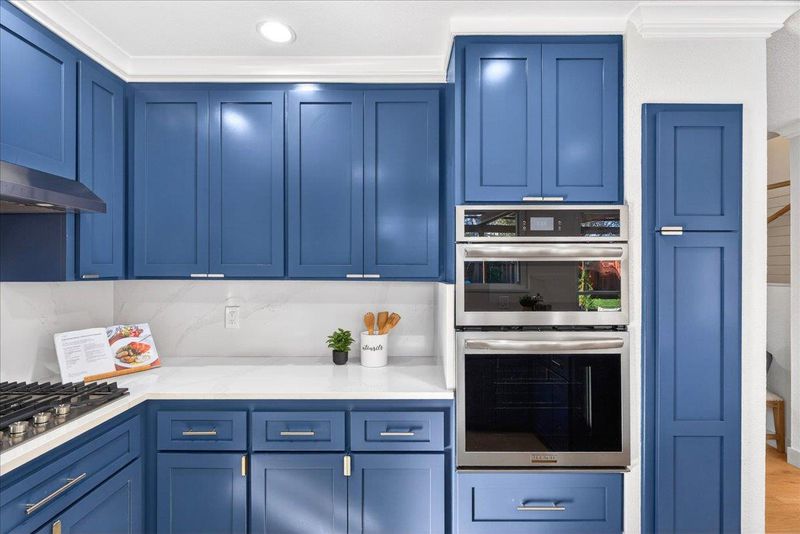 - Cooktop - Gas, Countertop - Quartz, Dishwasher, Exhaust Fan, Garbage Disposal, Microwave, Oven - Built-In, Refrigerator