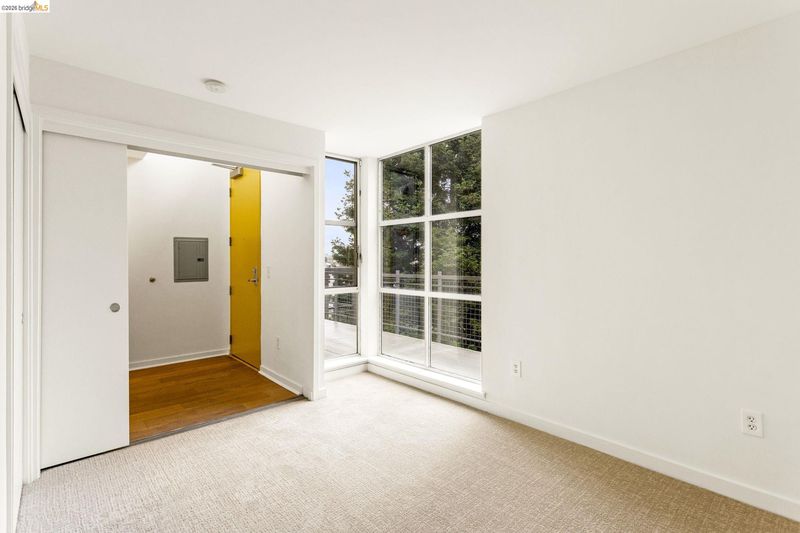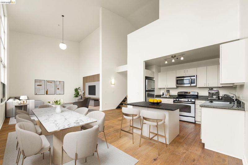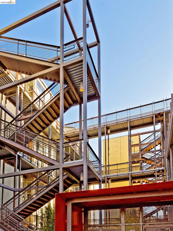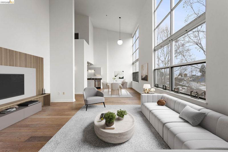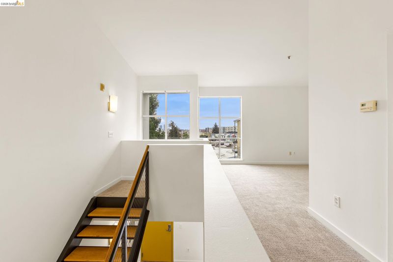 Stunning 1493 sq ft Loft in NOBE; one of the East Bay's hottest neighborhoods. This fabulous 2-level top-floor residence has 2 BR & 2 BR one on each floor. Expansive living room w/dramatic 2-story windows & view of the East Bay Hills. Floorplan has incredible flow. Lofty ceilings create a feeling of abundance throughout. Upper primary bedroom suite features oversized windows w/view of Downtown Oakland, full bath, & spacious walk-in closet. Lower level guest bedroom has sliding doors which add flexibility for use as a dedicated office space. Guest bath is Jack & Jill style w/shower over tub. Kitchen opens to the main living area and features stainless steel appliances & gas stove. Handsome hardwood floors. Sexy floating stairs. The GreenCity Lofts bldg is LEED certified and has in-floor hydronic radiant heating (hot water & radiant heat included in HOA dues). 1 car parking. HOA Amenities: gated garage, 2 community EVCS, guest parking, Amazon lockers, bike storage, entry gates w/video intercom system. Bay Street shopping nearby, minutes to Temescal & Rockridge. Easy commute to SF & Greater Bay Area via multiple transit options. Emery-Go-Round shuttle to BART just 1.5 blocks away! WalkScore of 94. Nature & cycling enthusiasts will enjoy scenic trails nearby.