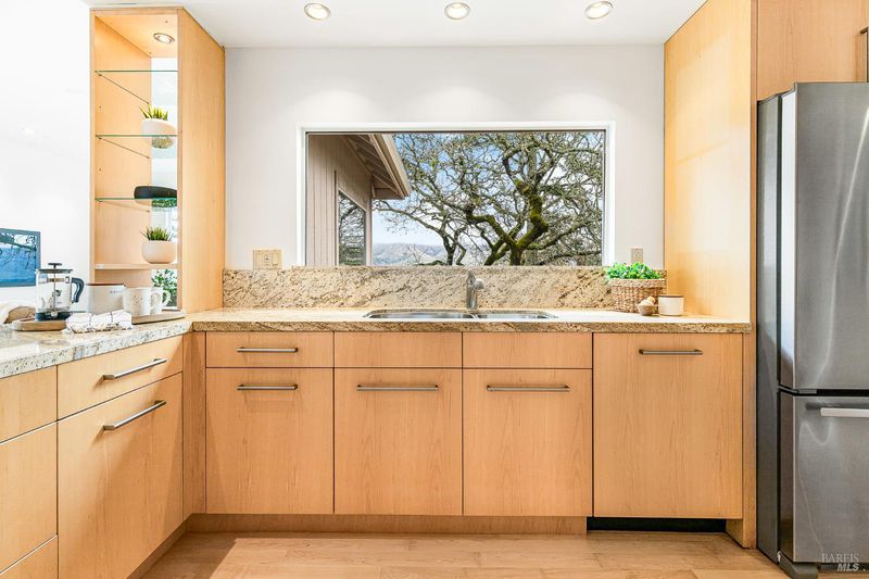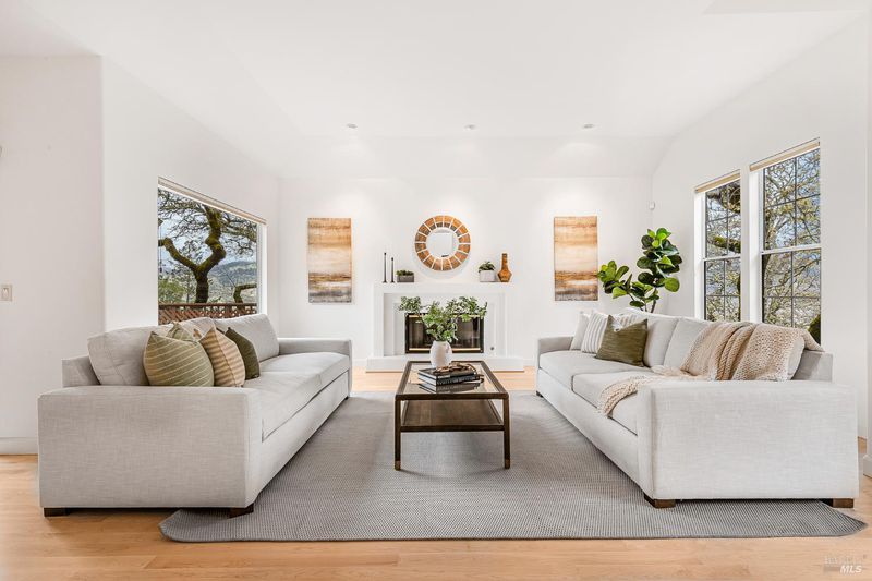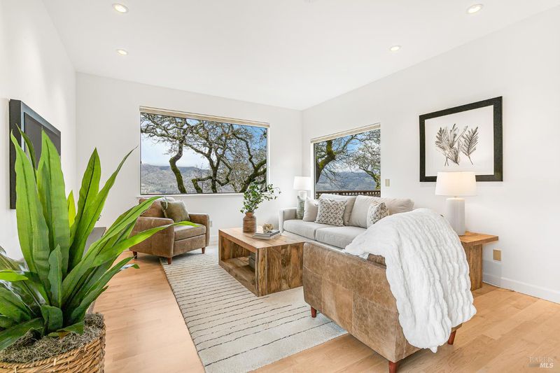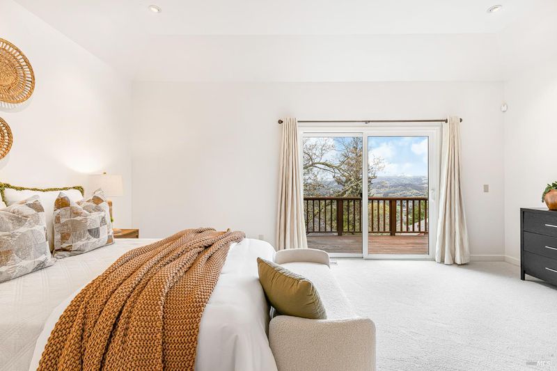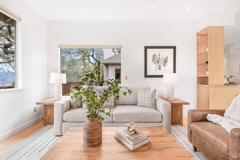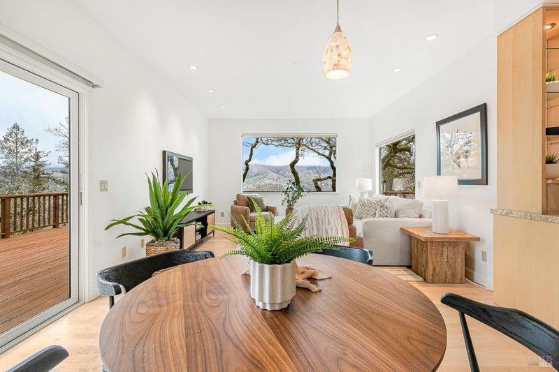Stunning Mt. Hood plan atop Oakmont in the Starry Knolls neighborhood with views of the Mayacamas mountain range. You'll find a freshly painted interior, refinished maple flooring and new carpeting in this beautifully remodeled home where the homeowners spared no expense. Three glass sliders open to the wrap around deck in this tucked-away location. Some of the many updates and features include dual pane windows and sliders, vaulted ceilings, recessed lighting, shaker style interior doors with updated hardware, a smartly appointed kitchen with abundant storage including a walk-in pantry, granite countertops, gas cooktop, and a view over the kitchen sink that will make dish washing a treat! The primary bedroom and bathroom feature a large walk-in closet, walk-in shower, double sinks, and storage galore. There's an inside laundry room with washer and dryer included - don't miss the wine fridge. One bedroom has been converted into an office/den/music room with built-in cabinetry. The three-car garage with epoxy floor is loaded with storage options, and there's a walk-in room under the house with lighting and additional storage.