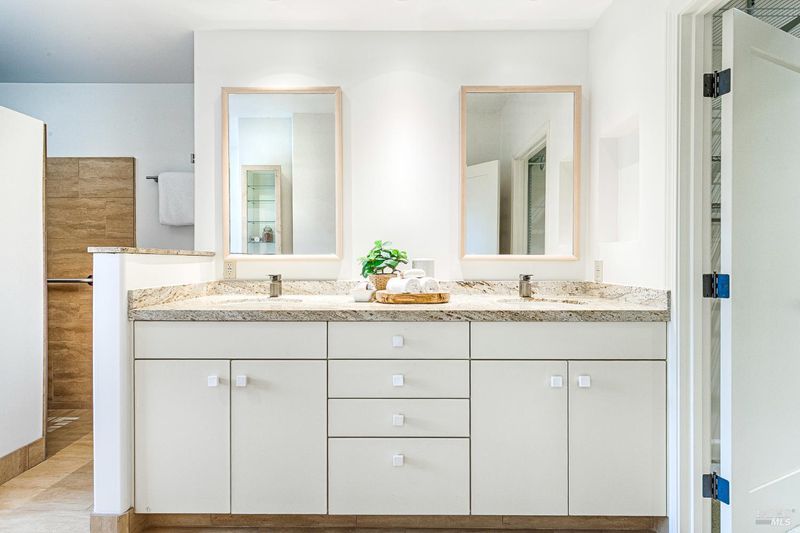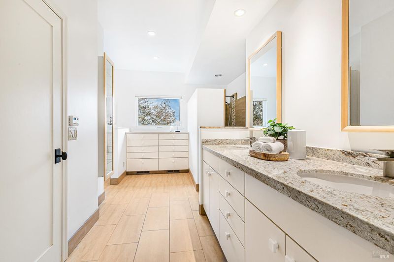 - Bidet, Double Sinks, Shower Stall(s), Stone, Tile, Walk-In Closet, Window