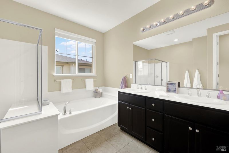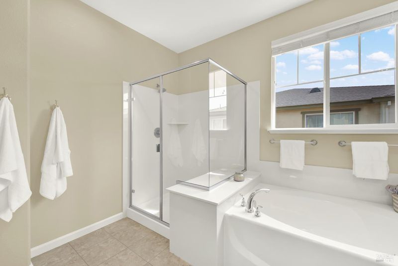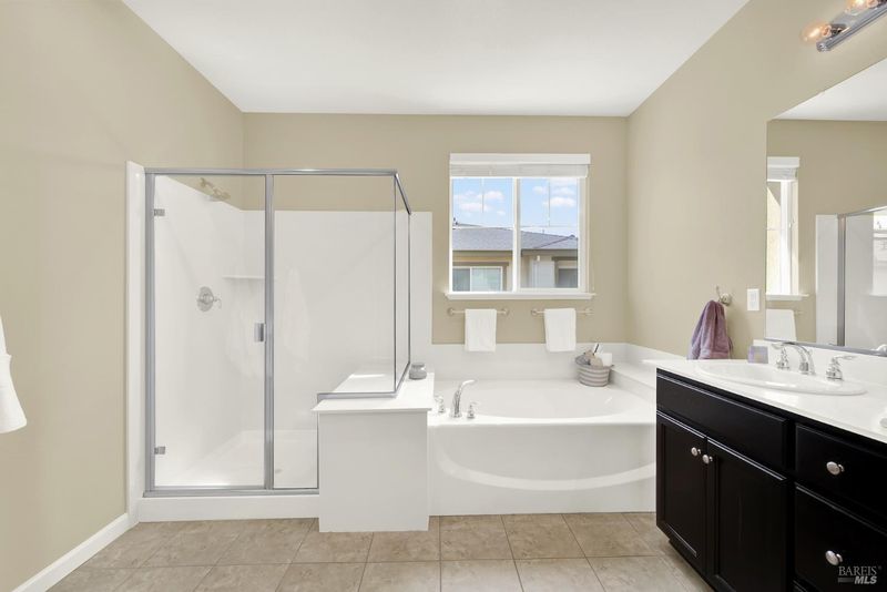 - Double Sinks, Shower Stall(s), Tub, Walk-In Closet