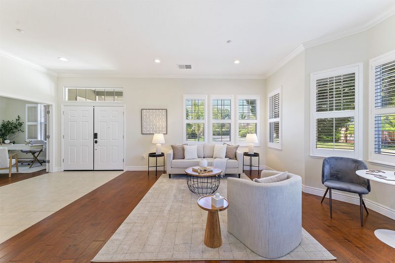 Must see this turn key NEWER ONE STORY featuring grand 10 ft tall ceilings, stunning wide plank hardwood floors, crown molding, recessed LED lighting, plantation shutters, new paint, ceiling fans, and OWNED ELECTRIC SOLAR. Stepping through the WEST FACING double door entrance you will appreciate the open concept floor-plan and modern and spacious interior. Enjoy the eat-in kitchen with abundant cabinetry, gas range and stainless appliances. Private primary suite with double door entrance, large walk-in closet, slider to the backyard, and an updated en-suite bath with separate shower and tub. Enjoy indoor/outdoor living at its best with 3 sliding doors to access the huge wrap around backyard featuring two covered patios and plenty of room to add a pool, ADU, or side yard access. Desirable court location with NO HOA and conveniently located with easy access nearby schools, parks, and downtown!!!