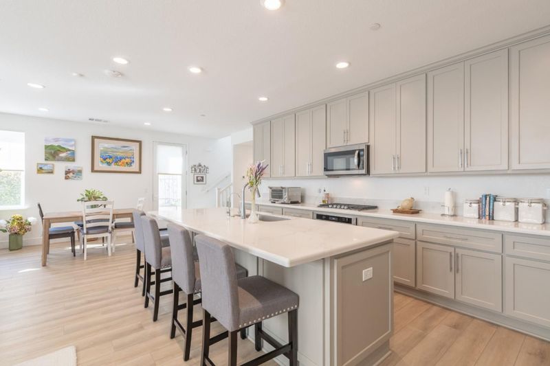- 220 Volt Outlet, Cooktop - Gas, Countertop - Quartz, Dishwasher, Exhaust Fan, Freezer, Garbage Disposal, Island with Sink, Microwave, Oven - Built-In, Oven Range - Electric, Refrigerator