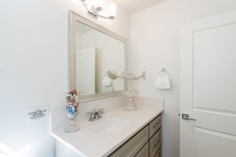 - Double Sinks, Half on Ground Floor, Primary - Stall Shower(s), Shower over Tub - 1, Solid Surface, Tile