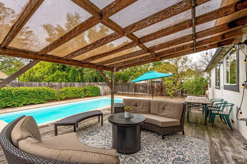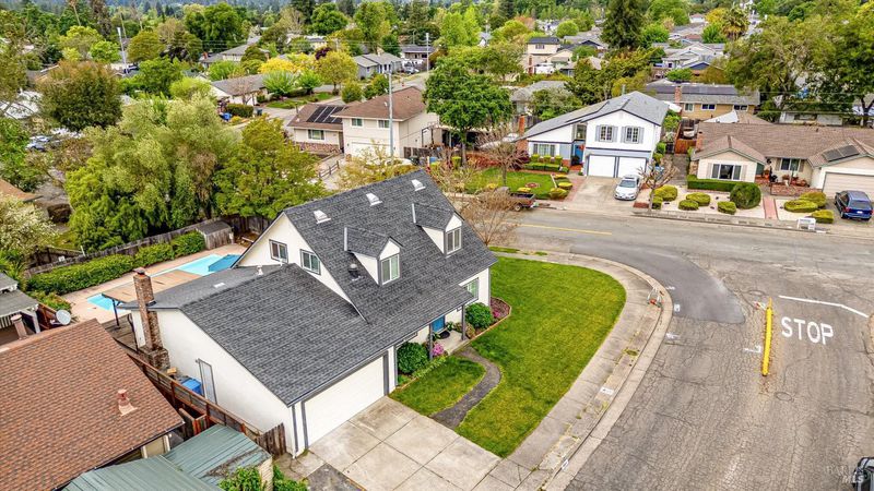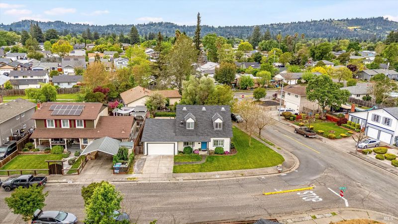 Located on a corner lot in desirable Rincon Valley, this charming home offers a blend of original character and modern updates. Dormer windows and a covered front porch add curb appeal, while the interior features a functional layout designed for comfortable living. A sleek fireplace creates a warm focal point, complemented by built-ins and thoughtful details throughout. The updated kitchen features white cabinetry, quartz countertops, stainless steel appliances, and a breakfast bar with open shelving for added convenience. Direct access to the backyard makes indoor-outdoor dining and entertaining seamless. The backyard includes a swimming pool and covered patio, providing space for relaxing or hosting gatherings. Inside, the layout supports both everyday living and entertaining. Additional features include shiplap accents in the bathroom, built-in storage, and a converted loft attic offering flexible use as a home office, gym, or creative space. The home includes 5 bedrooms and 3 bathrooms across approximately 2,000 square feet. Solar panels offer energy efficiency, and side driveway parking with access to the backyard adds practicality. Conveniently located near Tanglewood Park, shopping, dining, hiking trails, and wineries.
