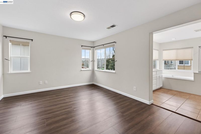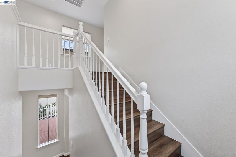 Welcome to 43 W Casita Ln, a stunning 2,341 sq ft residence in Mountain House, CA, featuring 3 bedrooms and 2.5 bathrooms. This Mediterranean-inspired home greets you with a charming stucco exterior and a lushly landscaped entryway. Inside, an airy, open-concept floor plan is defined by soaring ceilings, designer neutral paint, and sleek wood-look flooring throughout the main level. A light-filled formal living area with elegant arched windows flows into a dining space highlighted by a contemporary chandelier. The gourmet kitchen boasts crisp white cabinetry,stainless steel appliances, and a large tile-topped island with a breakfast bar, all overlooking a family room with a cozy tile-surround fireplace. Upstairs, a versatile loft provides additional living space, while the primary suite offers a spa-like retreat with dual vanities, a deep soaking tub, and a separate glass-enclosed shower. Secondary bedrooms are spacious and share a well-appointed bath with double sinks. Sliding glass doors lead to a private yard space with a low-maintenance wooden deck perfect for outdoor relaxation. Welcome Home!