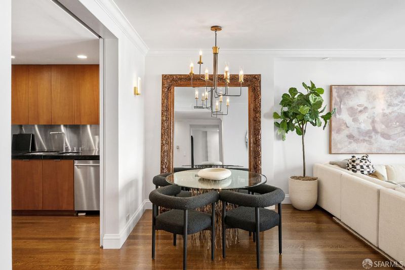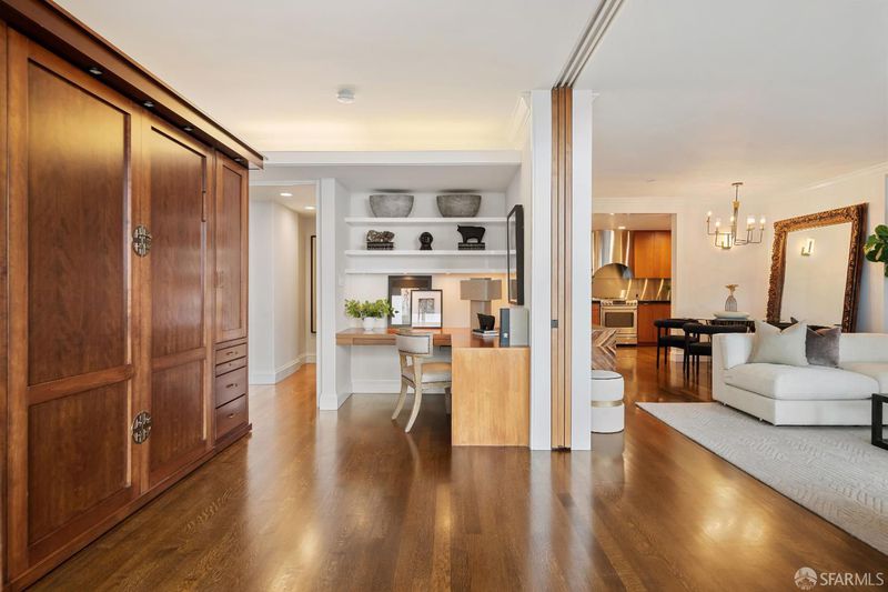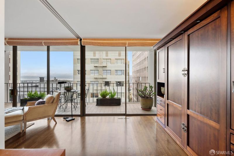 A beautifully updated Nob Hill residence at the iconic Comstock, blending classic San Francisco elegance with modern comfort. Featuring floor-to-ceiling windows in both the living room and primary suite, the home is filled with abundant northern light, complemented by peek-a-boo Bay views and a private balcony that invites moments of pause, from morning coffee to evening twilight. Rich hardwood floors flow throughout much of the home, the updated chef's kitchen is both stylish and functional, offering generous counter space and thoughtful design. The primary en-suite includes a spacious walk-in closet and a spa-like bathroom. The second bedroom features a custom built-in Murphy bed and cabinetry, allowing for an effortless transition between guest room and office. Additional highlights include an in-unit washer and dryer, one-car parking, and extra storage. Residents enjoy exceptional amenities such as a 24-hour doorman, valet parking for guests, professional on-site management, a club room, and a wraparound terrace. Ideally located just steps from Downtown, Chinatown, and North Beach, offering easy access to some of San Francisco's most vibrant neighborhoods.