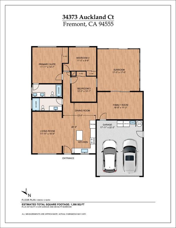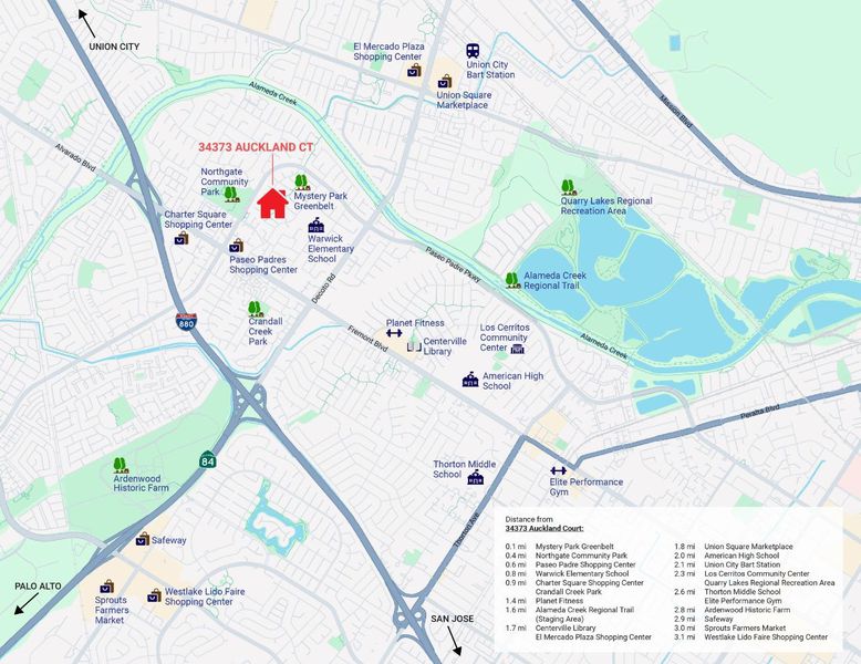 Beautifully renovated in 2019, this exceptional Northgate home blends modern upgrades with everyday comfort. A professionally constructed ~300 sq ft sunroom addition (not included in living area) offers versatile space ideal for a home office, gym, or recreation. The open-concept kitchen showcases quartz countertops, a center island, and stainless steel appliances, flowing seamlessly into spacious living and family rooms designed for gathering and entertaining. Thoughtful upgrades include a new roof, Tesla solar with EV charging, upgraded electrical, copper repiping, new HVAC system, Milgard double-pane windows and patio doors, hardwood flooring, recessed lighting, skylights, and an epoxy-finished garage floor. Enhanced energy efficiency with CertainTeed R-38 attic insulation and air sealing, plus new fencing and fresh interior and exterior paint. Nestled on a quiet cul-de-sac in the highly desirable Northgate neighborhood, the home borders Mystery Park greenbelt with direct greenbelt access to Warwick Elementary (9/10), and is near Thornton Middle (9/10) and American High (9/10), per GreatSchools test scores. Set on an approximately 6400 sq ft lot with a beautifully landscaped flower-filled yard. Ideally located and conveniently close to shopping, parks, trails, BART, 880 and 84