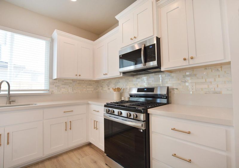 - Countertop - Quartz, Dishwasher, Garbage Disposal, Hookups - Ice Maker, Microwave, Oven Range - Gas, Pantry