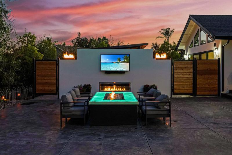 Entertainers Paradise with Seamless Indoor-Outdoor Living: This residence blends sophisticated style with functionality. The well-appointed office & custom fish tank create a distinctive first impression, leading into an expansive great room anchored by timeless flooring & walls of windows that fill the space with natural light. The open layout flows effortlessly into a spacious dining area & a gourmet kitchen curated for everyday living & gatherings. Quartz countertops, professional-grade stainless steel appliances, a built-in refrigerator, generous prep surfaces, & abundant cabinetry provide both beauty & performance. Technology enhances the experience with app-controlled window coverings and an integrated smart system that manages heating & cooling for tailored comfort. The primary suite offers a private retreat w generous closet space & a spa-inspired bath. All bathrooms include bidets for added convenience. The sliding glass doors open to a covered patio overlooking a built-in fire pit and golf course views off the great room. The 12x14 outdoor kitchen is fully equipped with a smoker, flat grill, BBQ, lighting. Lots of upgrades include epoxy garage floors, a generator, stamped concrete, 200 amp electrical panel, dog run, spa, double sided fireplace, hunter douglas shades