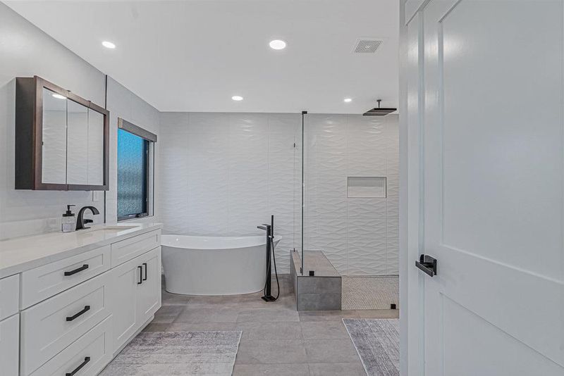 - Shower over Tub - 1, Bidet, Double Sinks, Updated Bath, Primary - Stall Shower(s), Stall Shower - 2+