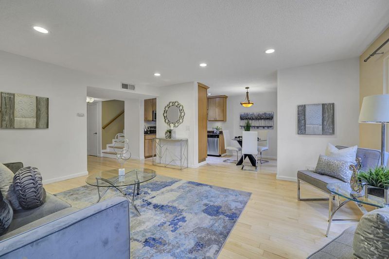 Beautifully updated 3-bed, 2.5-bath townhome in a desirable gated community filled with plenty of natural light. The open-concept living and dining areas flow seamlessly to a spacious, low-maintenance backyard with paversperfect for indoor-outdoor living. Enjoy modern wood flooring throughout and a stylish kitchen featuring white oak cabinetry, stainless steel appliances, and granite countertops. The spacious primary suite offers a giant walk-in closet and an en-suite bath with dual sinks. Well-sized secondary bedrooms provide flexibility for family, guests, or a home office. Additional highlights include a spacious attached 2-car garage. The HOA covers landscaping, gate, roof, exteriors and common areas. Conveniently located near shopping centers, public transit, and major freeways for easy commuting.