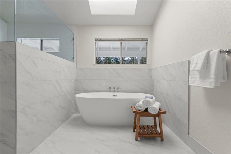 - Double Sinks, Full on Ground Floor, Outside Access, Primary - Oversized Tub, Primary - Stall Shower(s), Shower and Tub, Shower over Tub - 1, Stall Shower - 2+, Tubs - 2+, Updated Bath