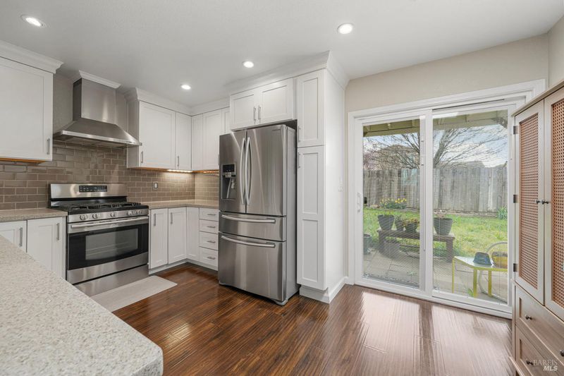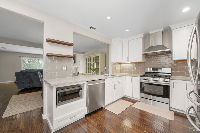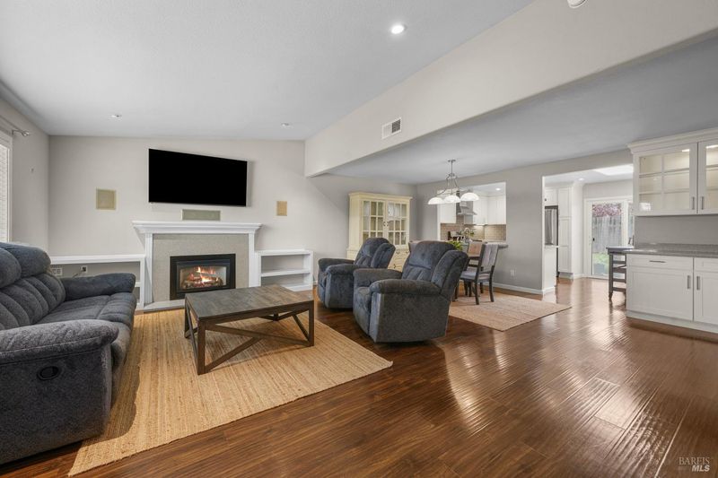 Beautifully remodeled single-story home in Vacaville offering 3 bedrooms and 2 full baths. Extensively rebuilt and expanded in 2013-2014, this home blends modern upgrades with comfortable everyday living. The expanded kitchen serves as the heart of the home, featuring quartz countertops, soft-close cabinetry, Samsung appliances, a gas range, a skylight, and under-cabinet lighting. The open-concept living and dining areas create an inviting space for gatherings, enhanced by custom-built-ins and a gas fireplace insert for added warmth and ambiance. Major improvements include updated electrical and HVAC systems, insulated windows and doors, updated roofing, new rear stucco, and added living space. Additional highlights include epoxy-coated garage flooring, whole-house fan, central vacuum system, security camera wiring, upgraded gas meter, on-demand water heater, extended driveway, and refreshed front landscaping. Don't miss the opportunity to see this beautifully updated home schedule your showing today.