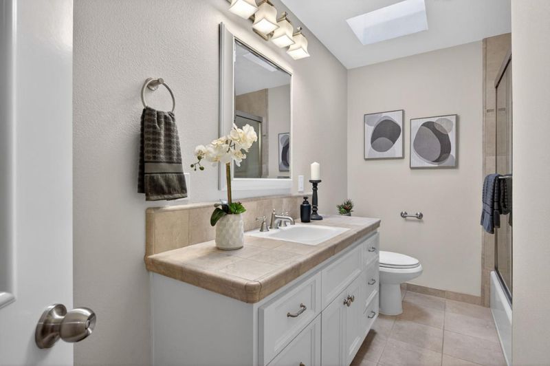 - Shower over Tub - 1, Skylight, Tile, Tub, Updated Bath, Primary - Stall Shower(s)