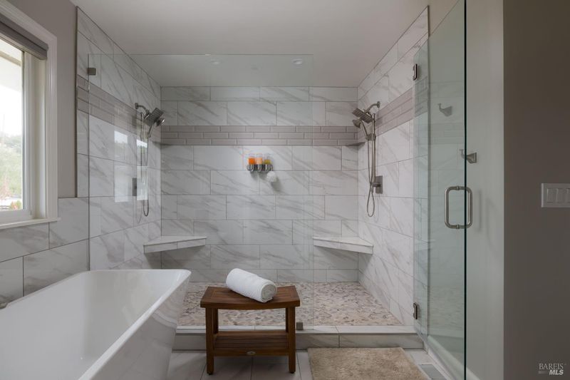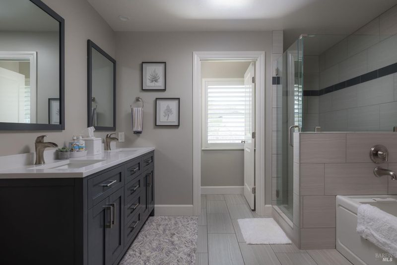 - Double Sinks, Low-Flow Toilet(s), Multiple Shower Heads, Soaking Tub, Tile, Walk-In Closet, Window