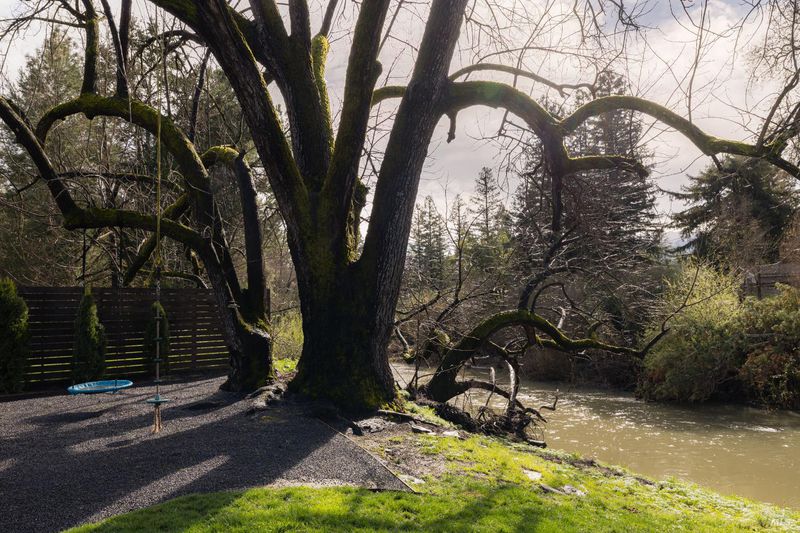 Set along a coveted stretch of the Napa River just moments from downtown St. Helena, this updated single-level ranch offers a rare trifecta: one usable acre, river frontage, and a boutique hobby vineyard framed by mature oaks and silvery olive treestimeless Wine Country at its most authentic. Recently refreshed with a new kitchen, updated baths, and new flooring throughout, the home balances relaxed California living with refined modern comfort. Clean lines and an intuitive layout create natural separation: the primary suite and media room occupy one wing, while two additional bedrooms are positioned oppositeideal for guests or family. At the heart of the home, the dining room opens to an expansive rear deck also accessed from the media room and a guest bedroom, creating seamless indoor-outdoor flow. Beyond, a broad manicured lawn gently meets the riverbank, making the landscape feel integral rather than adjacent. The grounds embody Napa Valley's enduring appeal: estate-grown fruit from a manageable hobby vineyard, mature olive trees with Mediterranean character, towering oaks for shade and presence, and an expansive lawn designed for gatherings or quiet evenings by the water. A two-car garage and generous parcel offer practicality and future flexibility. Whether as a full-time residence, refined second home, or legacy riverfront retreat, 201 Silverado Trail North captures the essence of St. Helena livingagricultural authenticity, natural beauty, and understated luxury in one of Napa Valley's most desirable settings. The home has been raised to local flood mitigation standards. A rare opportunity to live on the river, surrounded by vines, just minutes from world-class dining, tasting rooms, and boutiques.